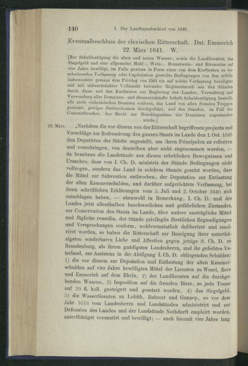 Die landständischen Verhältnisse in Cleve und Mark bis zum Jahre 1641.