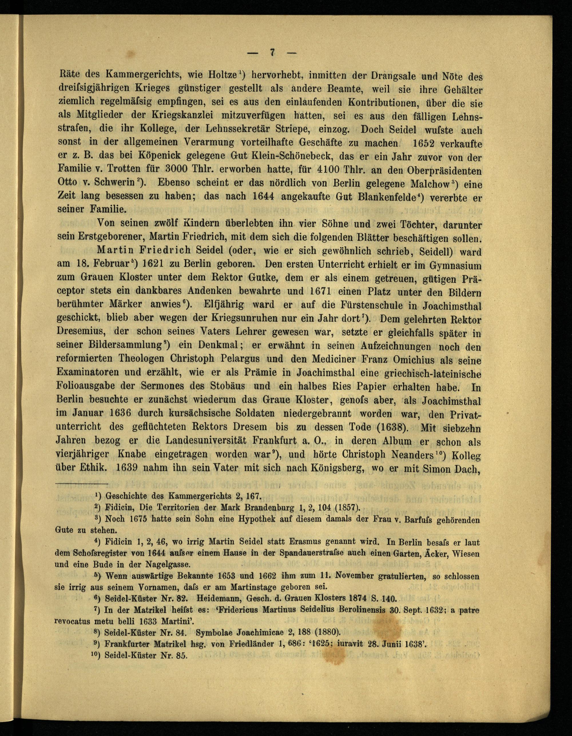 Martin Friedrich Seidel, ein brandenburgischer Geschichtsforscher des 17. Jahrhunderts / von Johannes Bolte