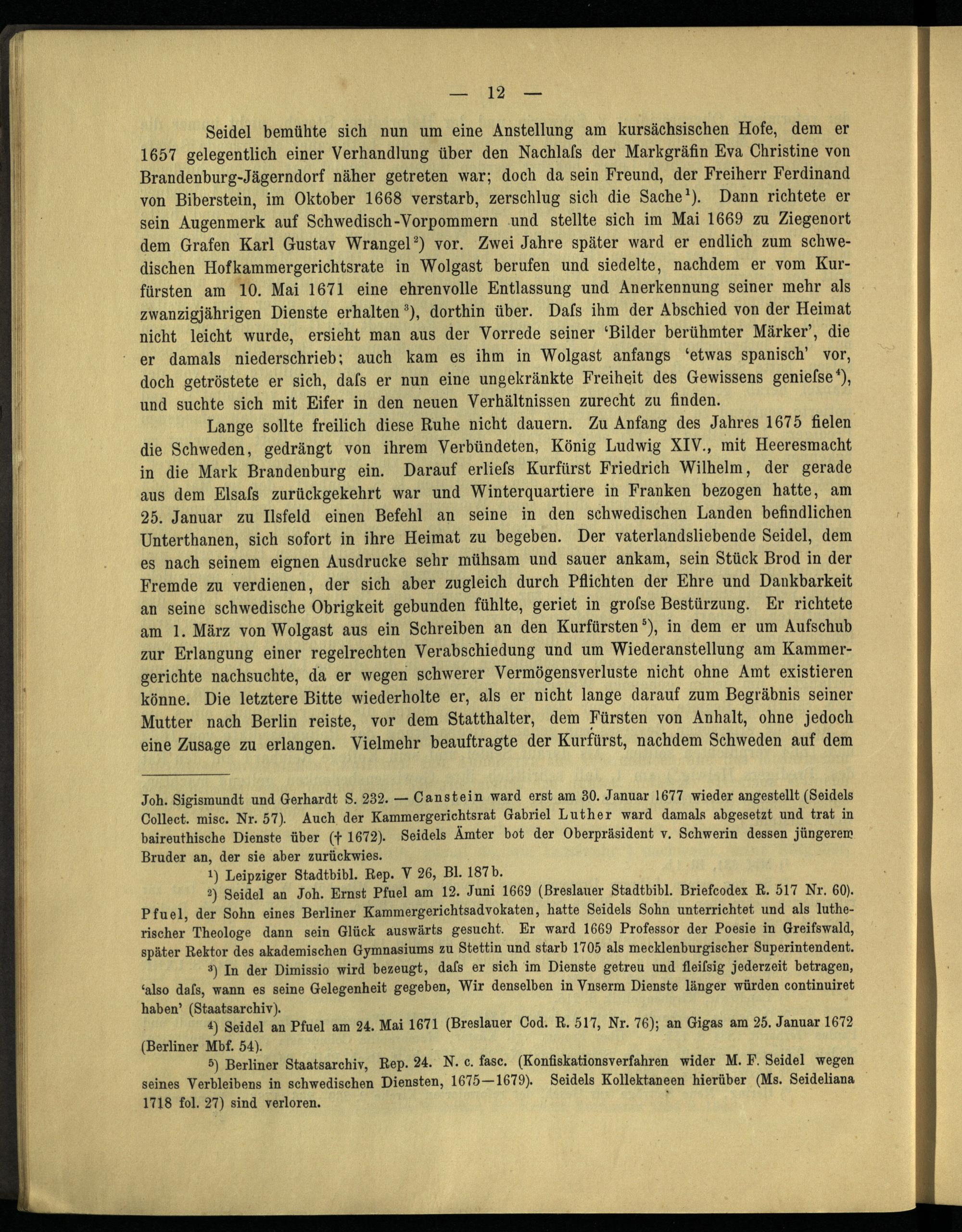 Martin Friedrich Seidel, ein brandenburgischer Geschichtsforscher des 17. Jahrhunderts / von Johannes Bolte