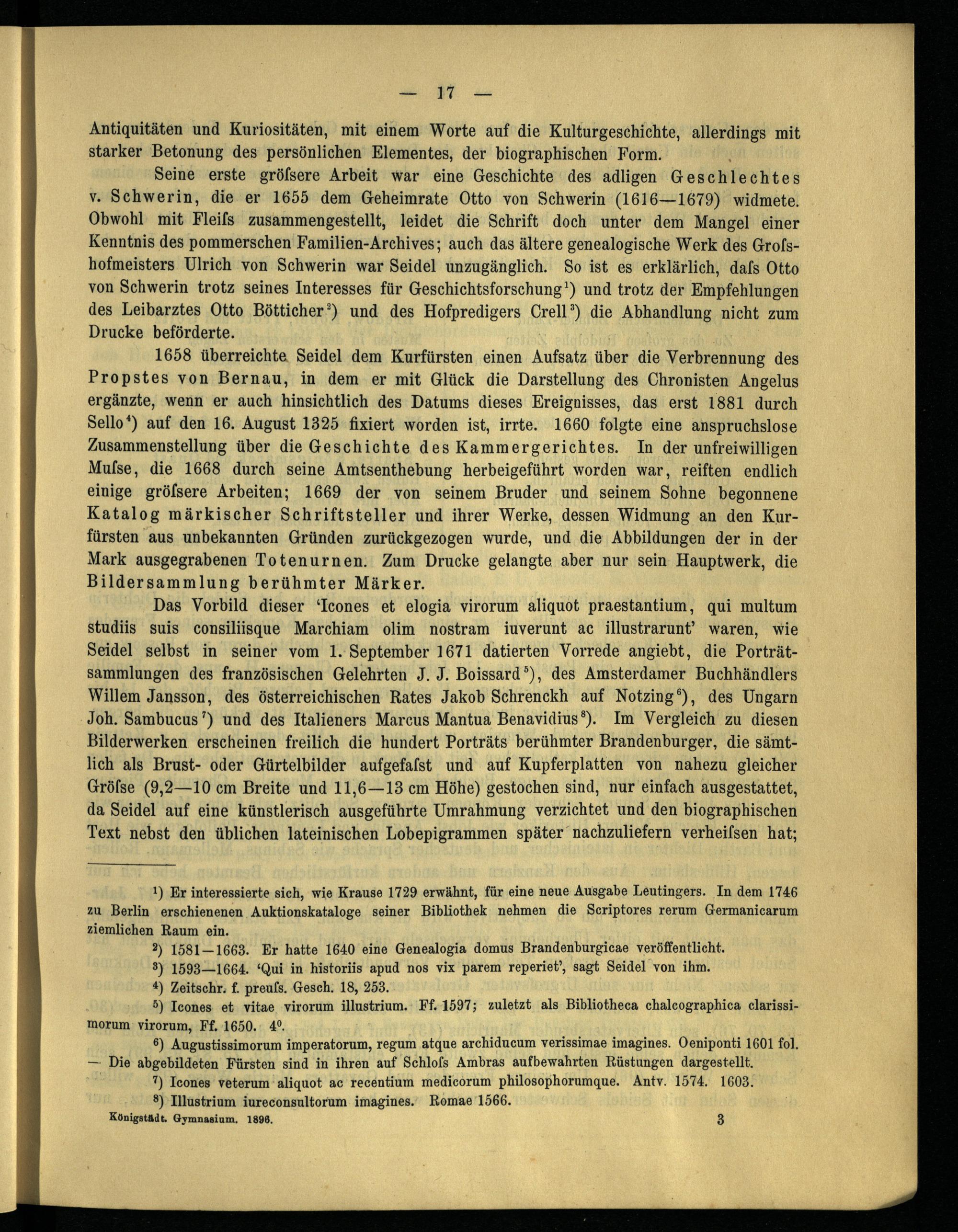 Martin Friedrich Seidel, ein brandenburgischer Geschichtsforscher des 17. Jahrhunderts / von Johannes Bolte