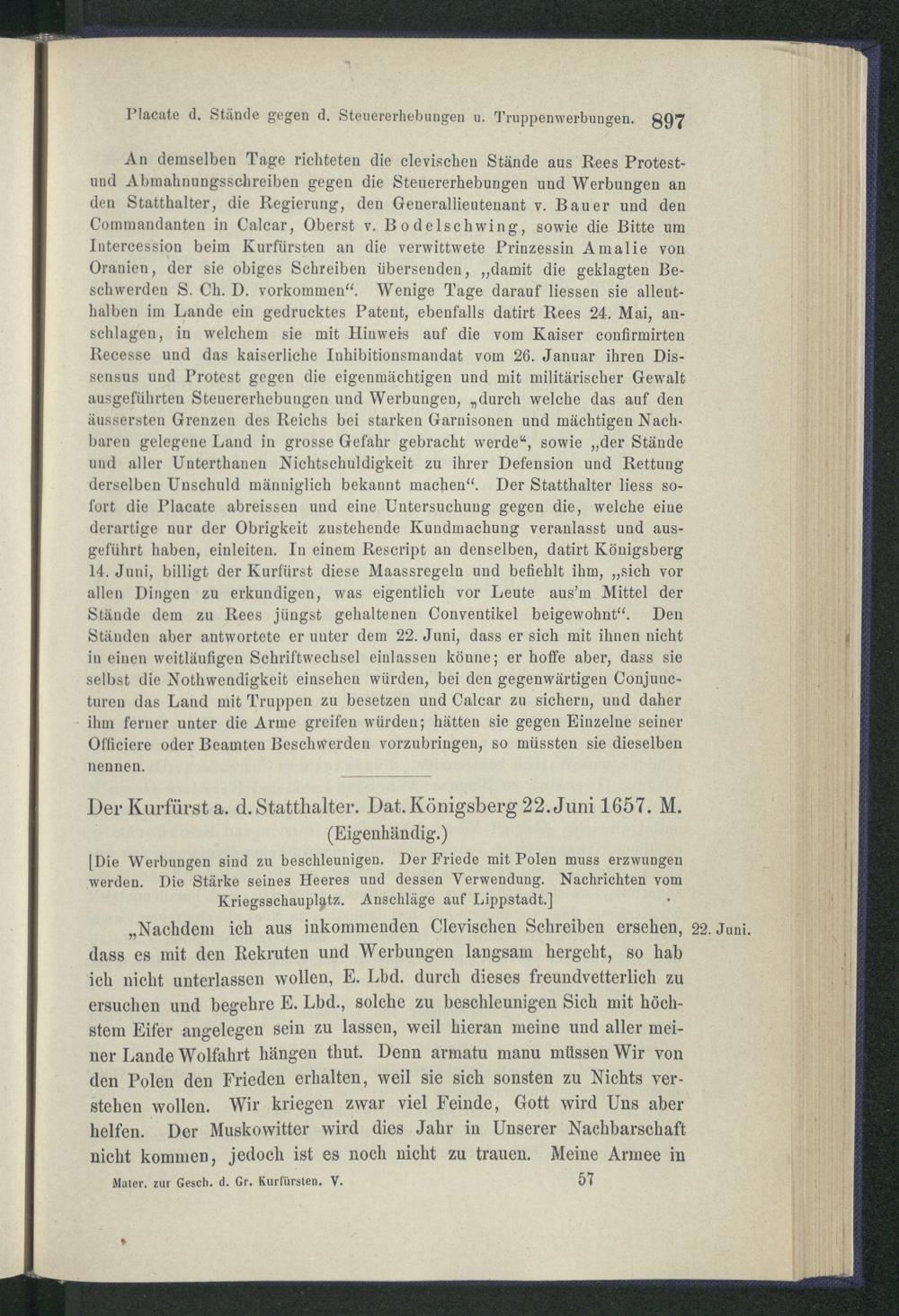 Urkunden und Actenstücke zur Geschichte des Kurfürsten Friedrich Wilhelm von Bra...