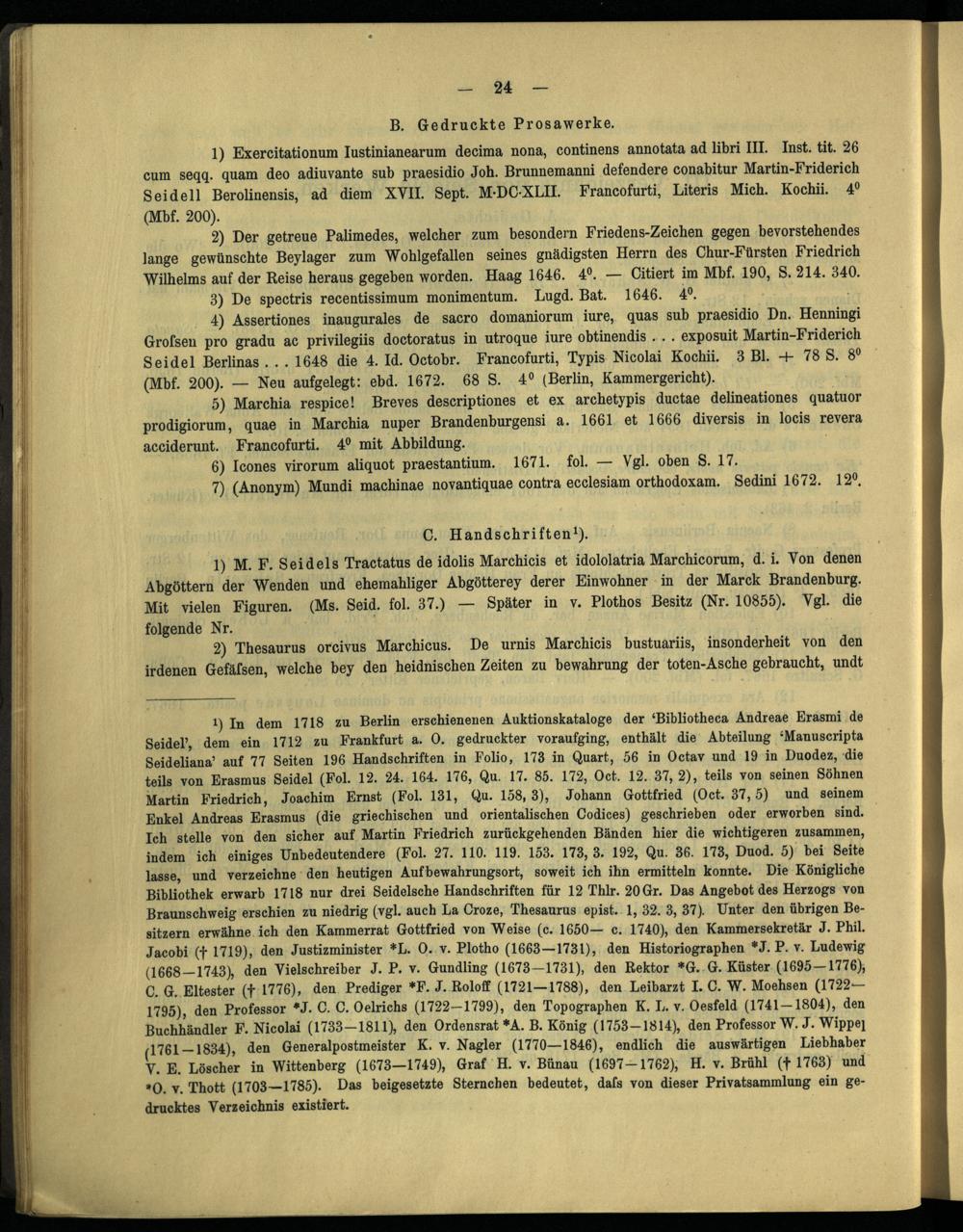 Martin Friedrich Seidel, ein brandenburgischer Geschichtsforscher des 17. Jahrhunderts / von Johannes Bolte