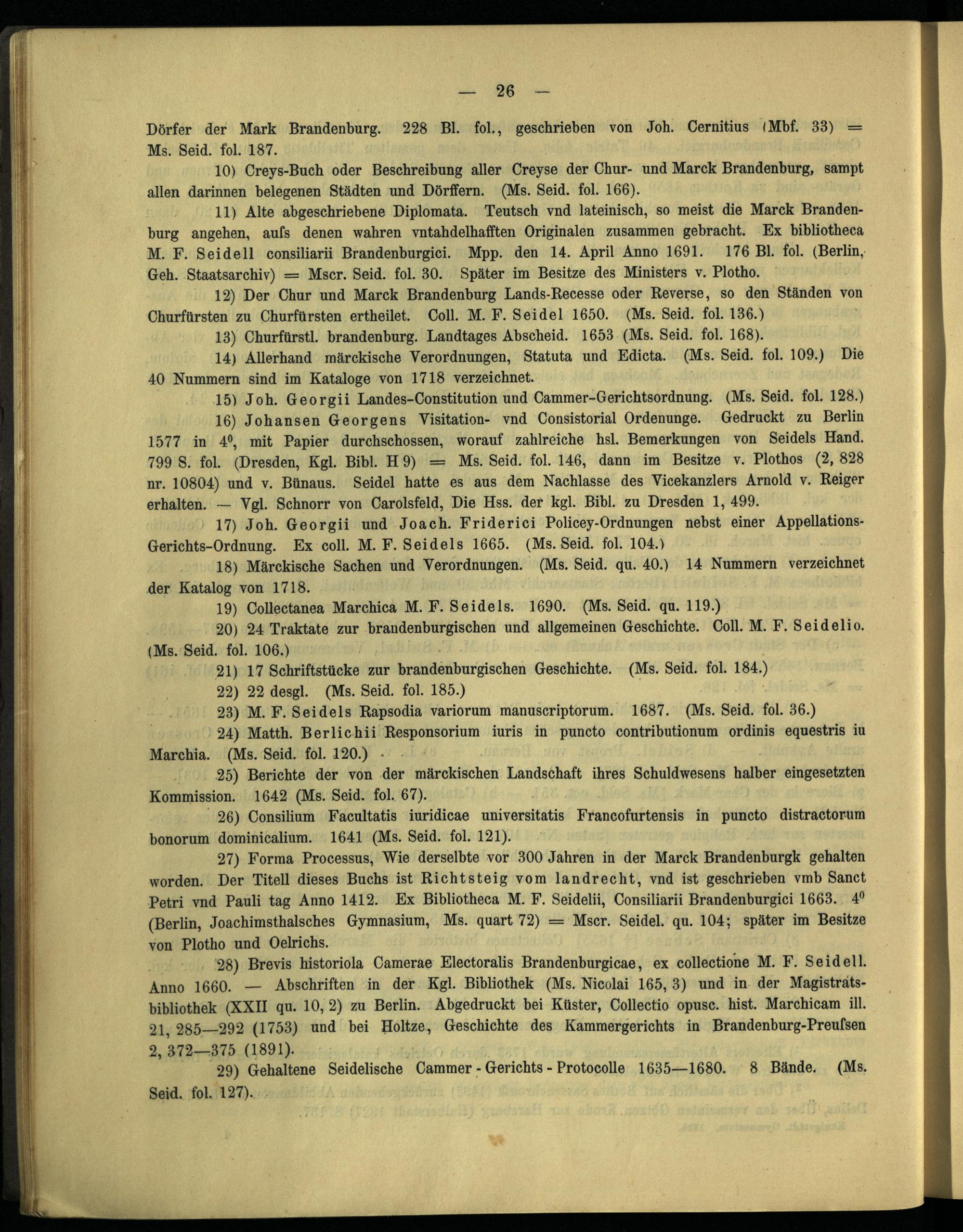 Martin Friedrich Seidel, ein brandenburgischer Geschichtsforscher des 17. Jahrhunderts / von Johannes Bolte