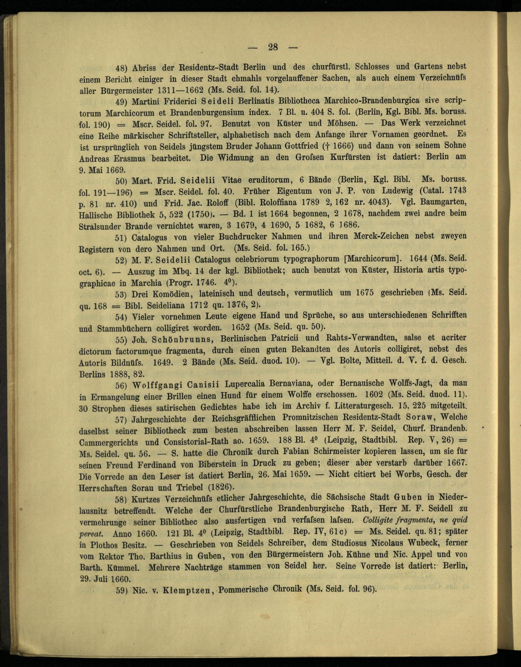 Martin Friedrich Seidel, ein brandenburgischer Geschichtsforscher des 17. Jahrhunderts / von Johannes Bolte