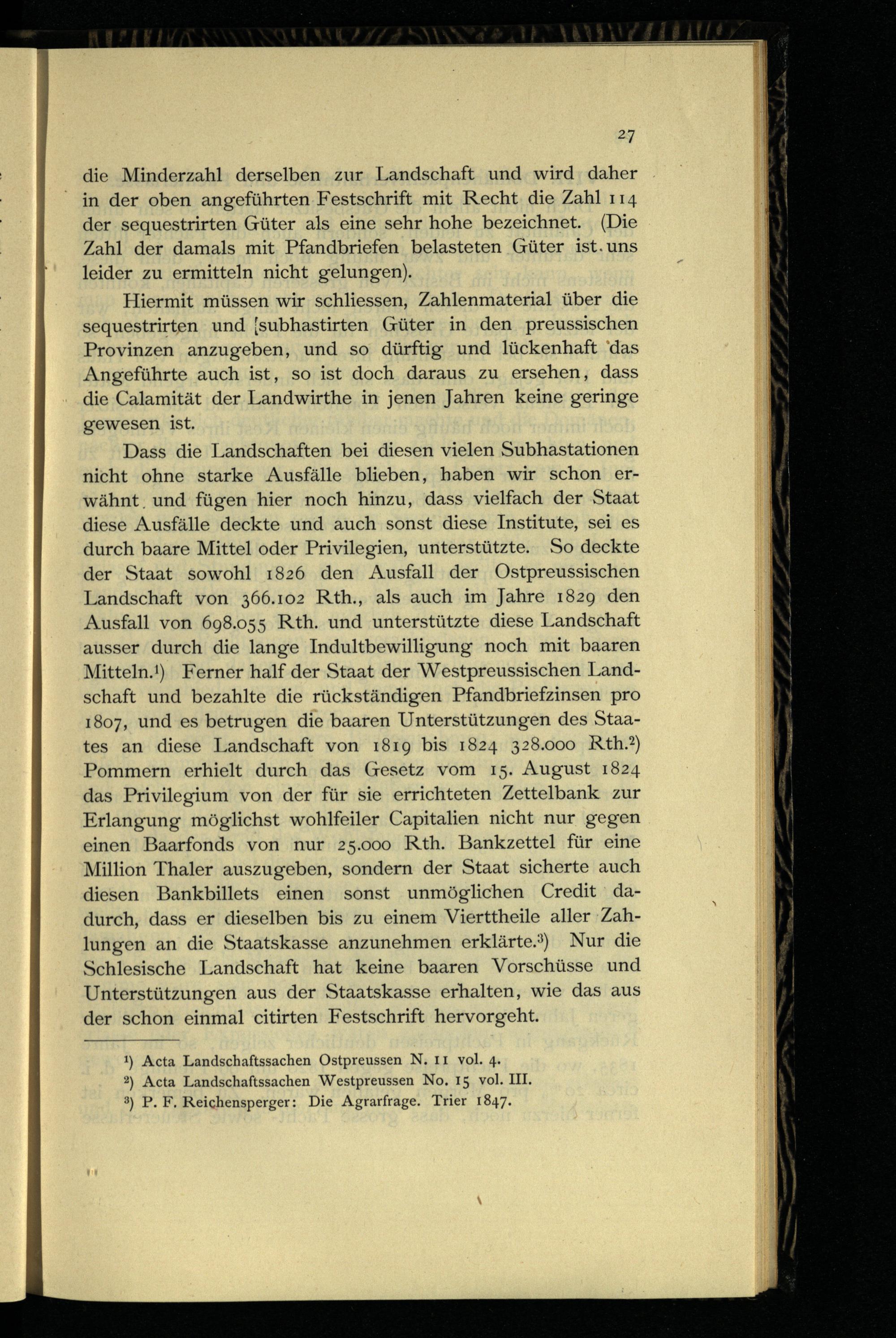 Die Agrarkrisis in Preussen während der zwanziger Jahre dieses Jahrhunderts