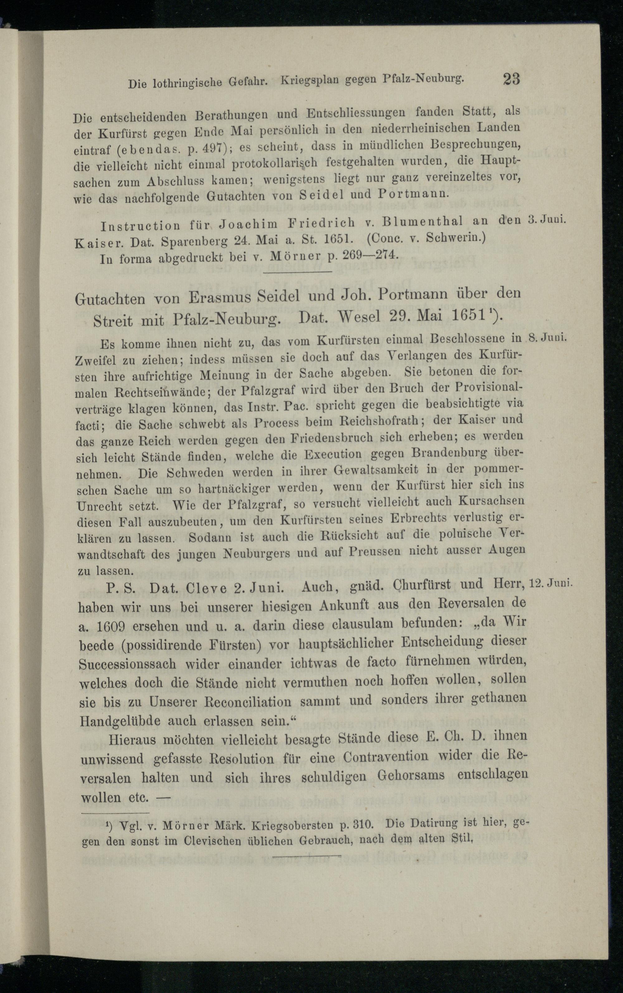 I. Der Krieg mit Pfalz-Neuburg 1651.