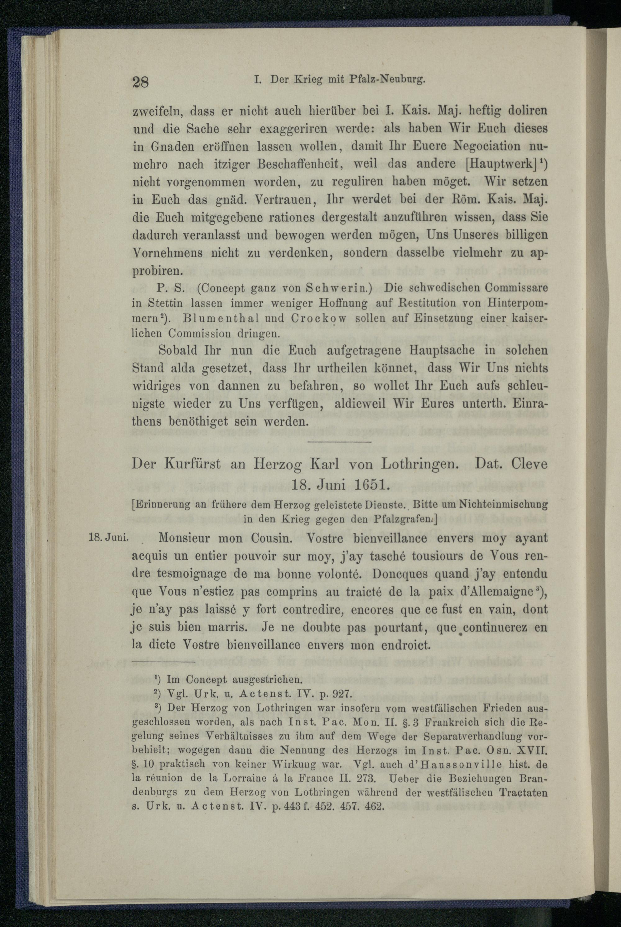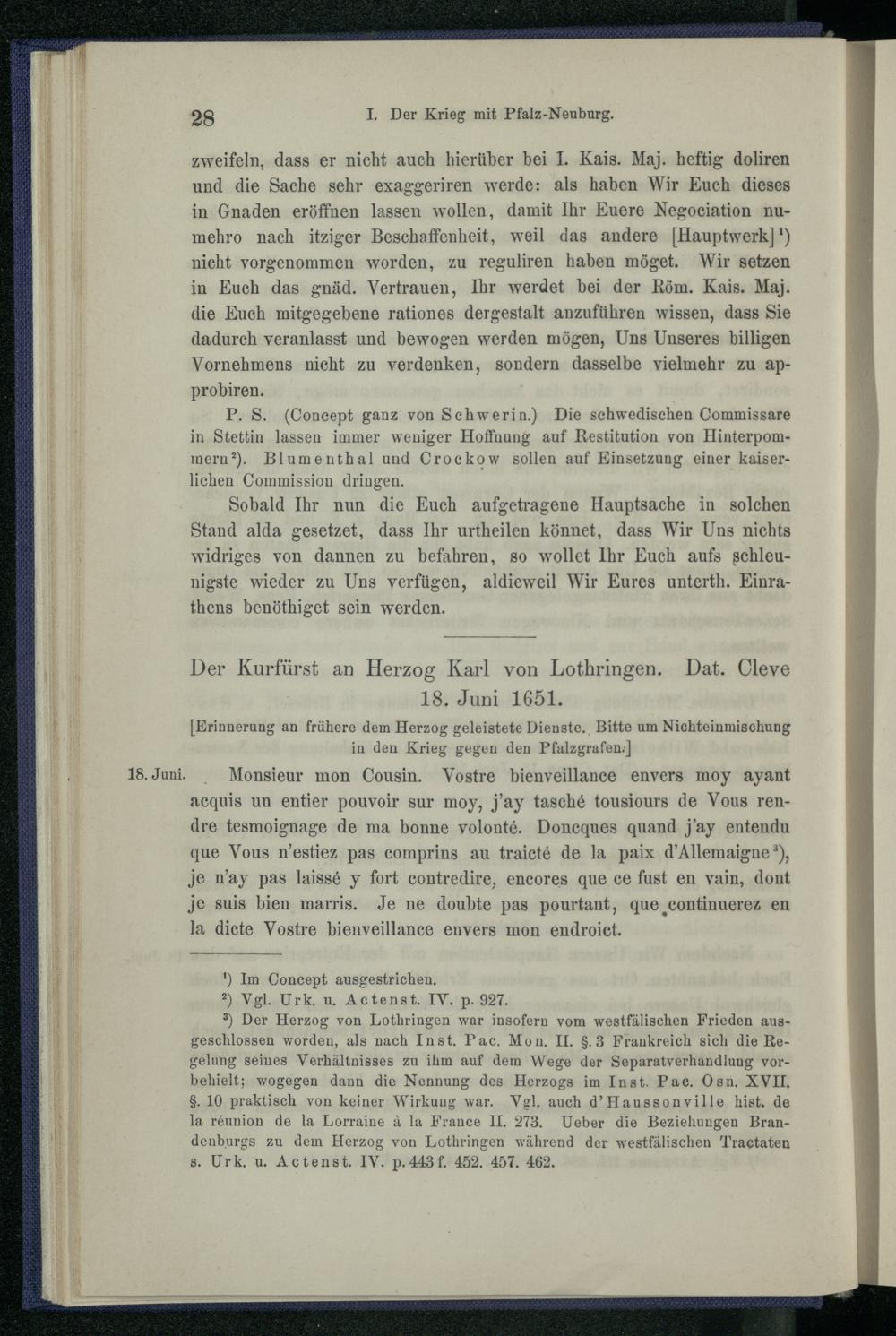 I. Der Krieg mit Pfalz-Neuburg 1651.