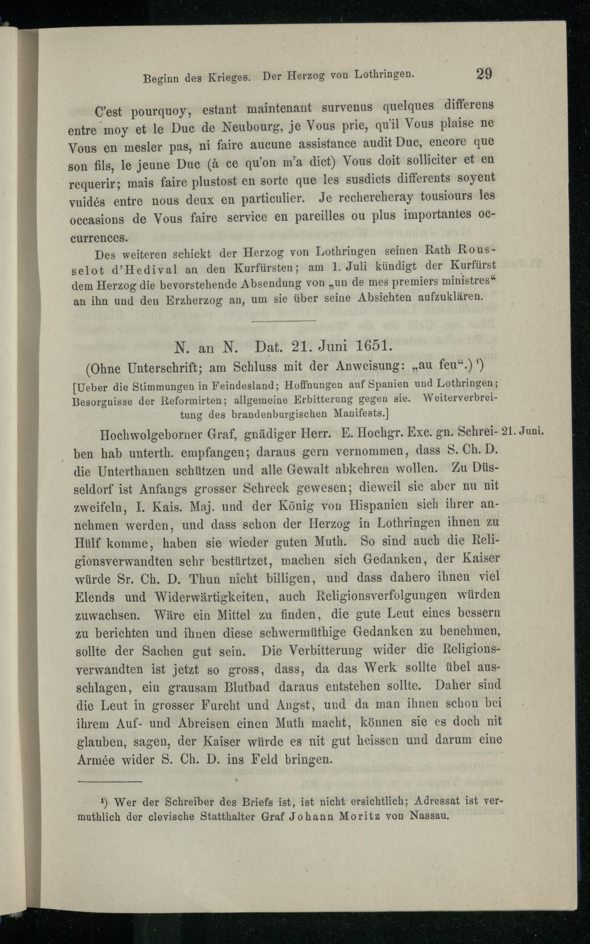 I. Der Krieg mit Pfalz-Neuburg 1651.