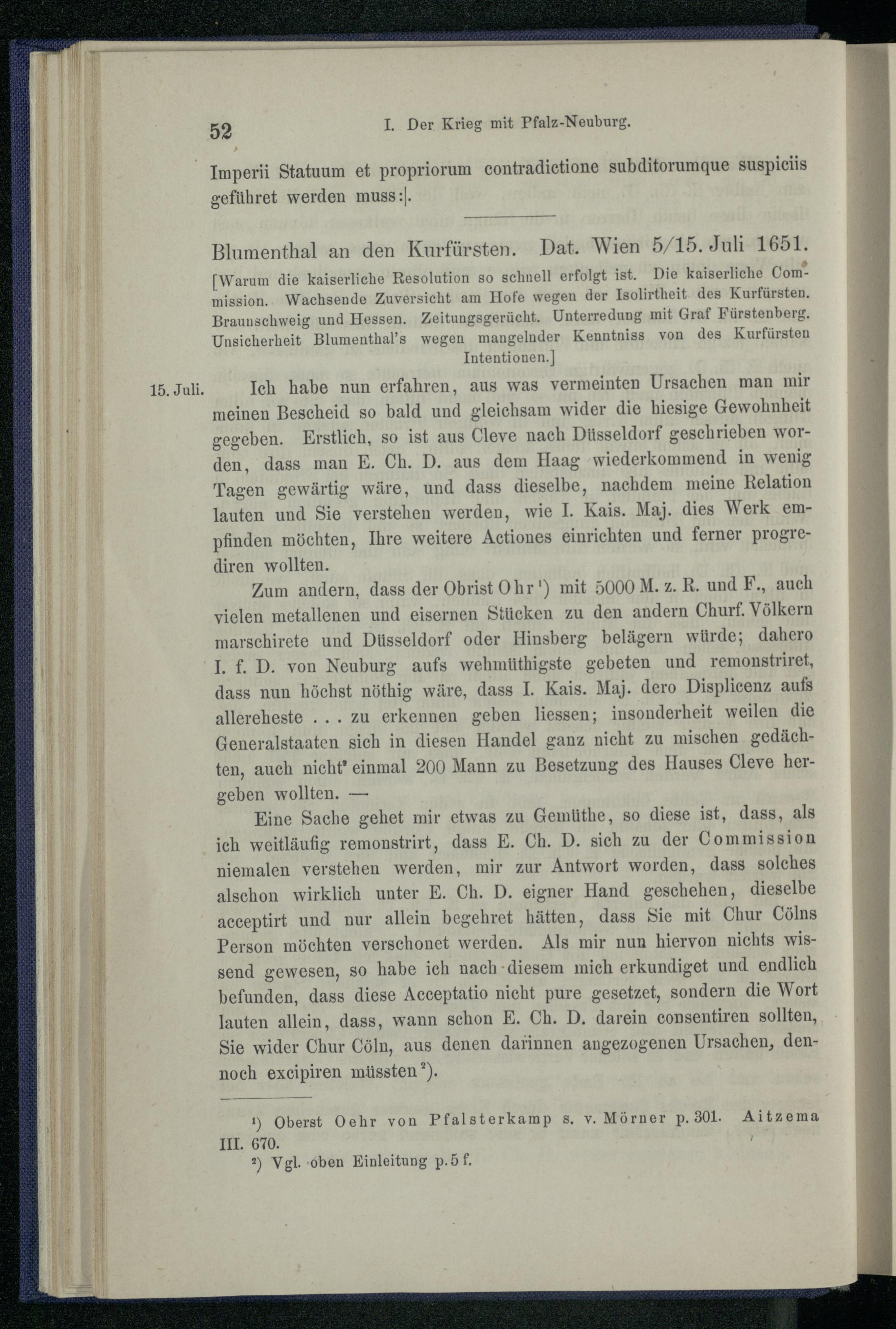 I. Der Krieg mit Pfalz-Neuburg 1651.