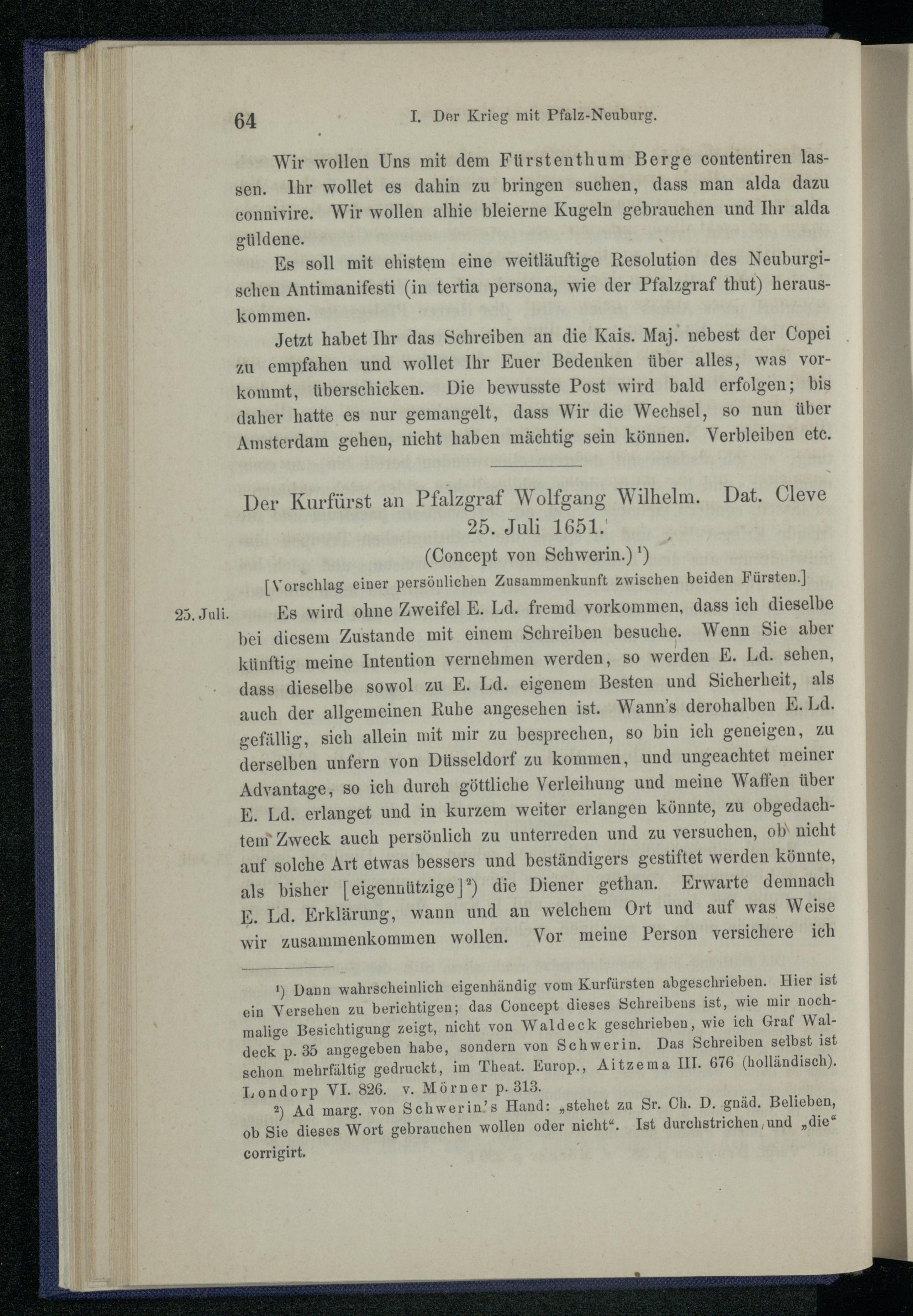 I. Der Krieg mit Pfalz-Neuburg 1651.