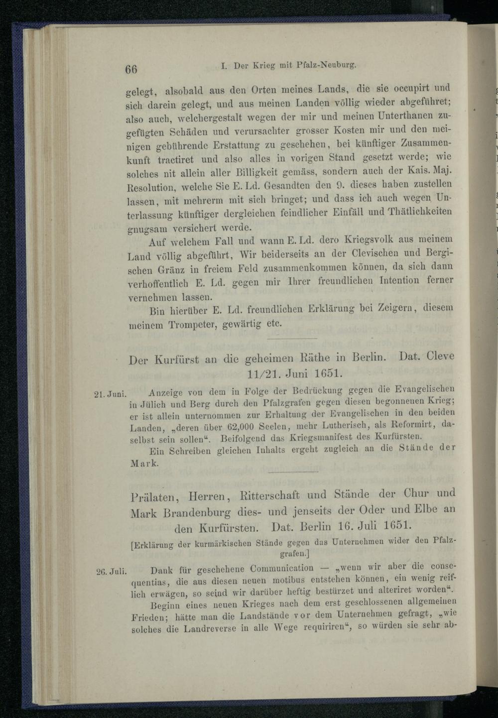 I. Der Krieg mit Pfalz-Neuburg 1651.