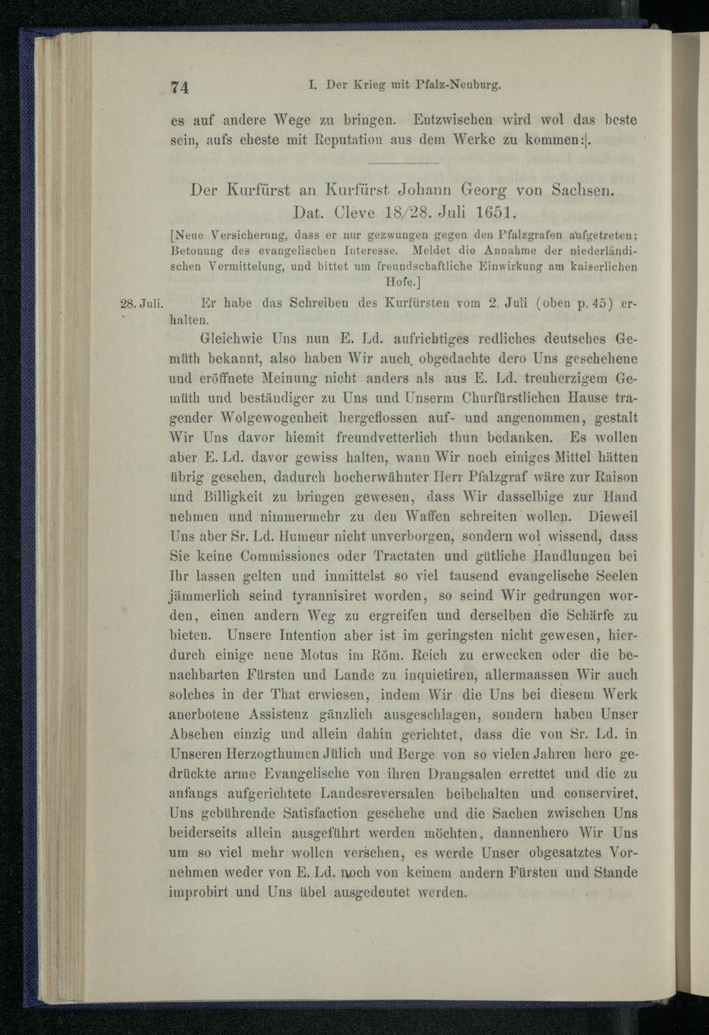 I. Der Krieg mit Pfalz-Neuburg 1651.