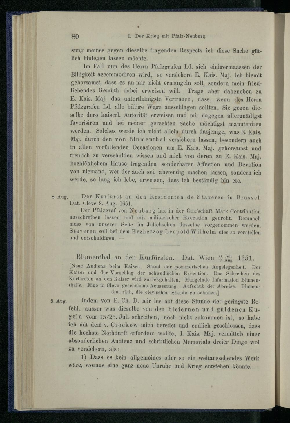I. Der Krieg mit Pfalz-Neuburg 1651.