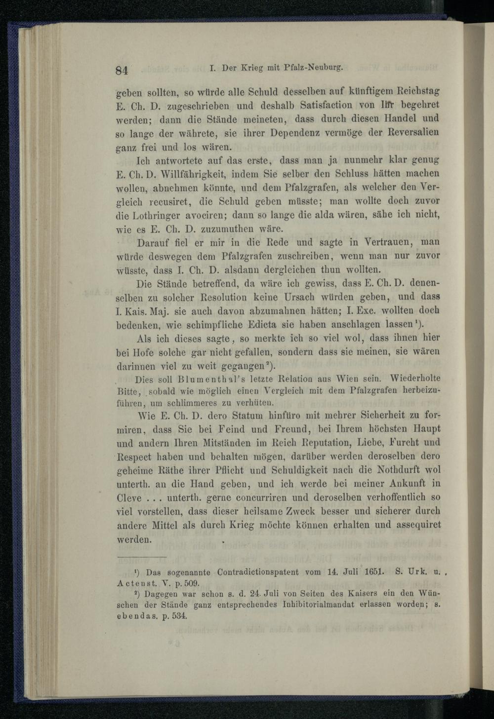 I. Der Krieg mit Pfalz-Neuburg 1651.