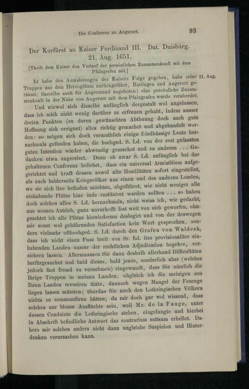 I. Der Krieg mit Pfalz-Neuburg 1651.