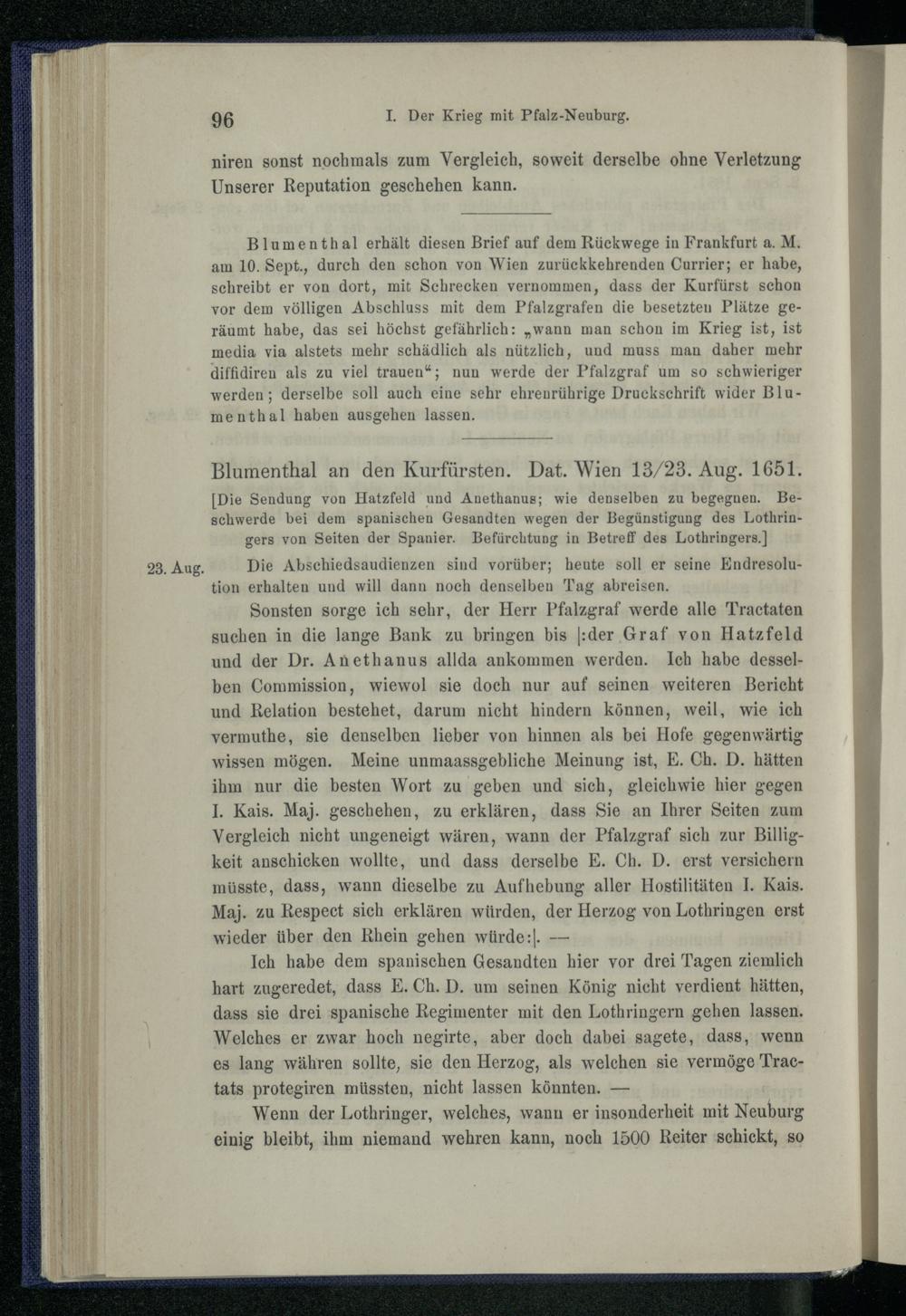 I. Der Krieg mit Pfalz-Neuburg 1651.