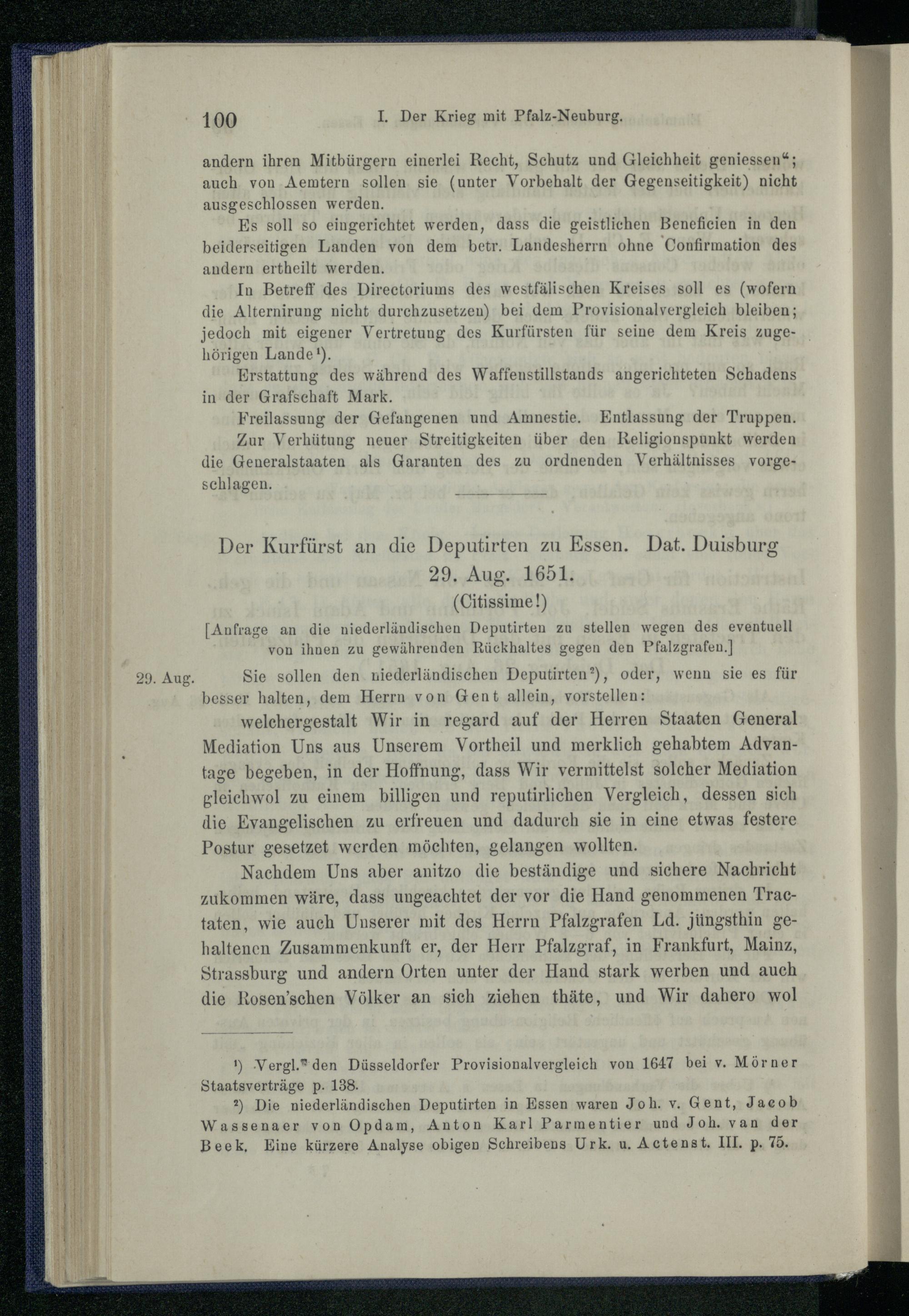 I. Der Krieg mit Pfalz-Neuburg 1651.