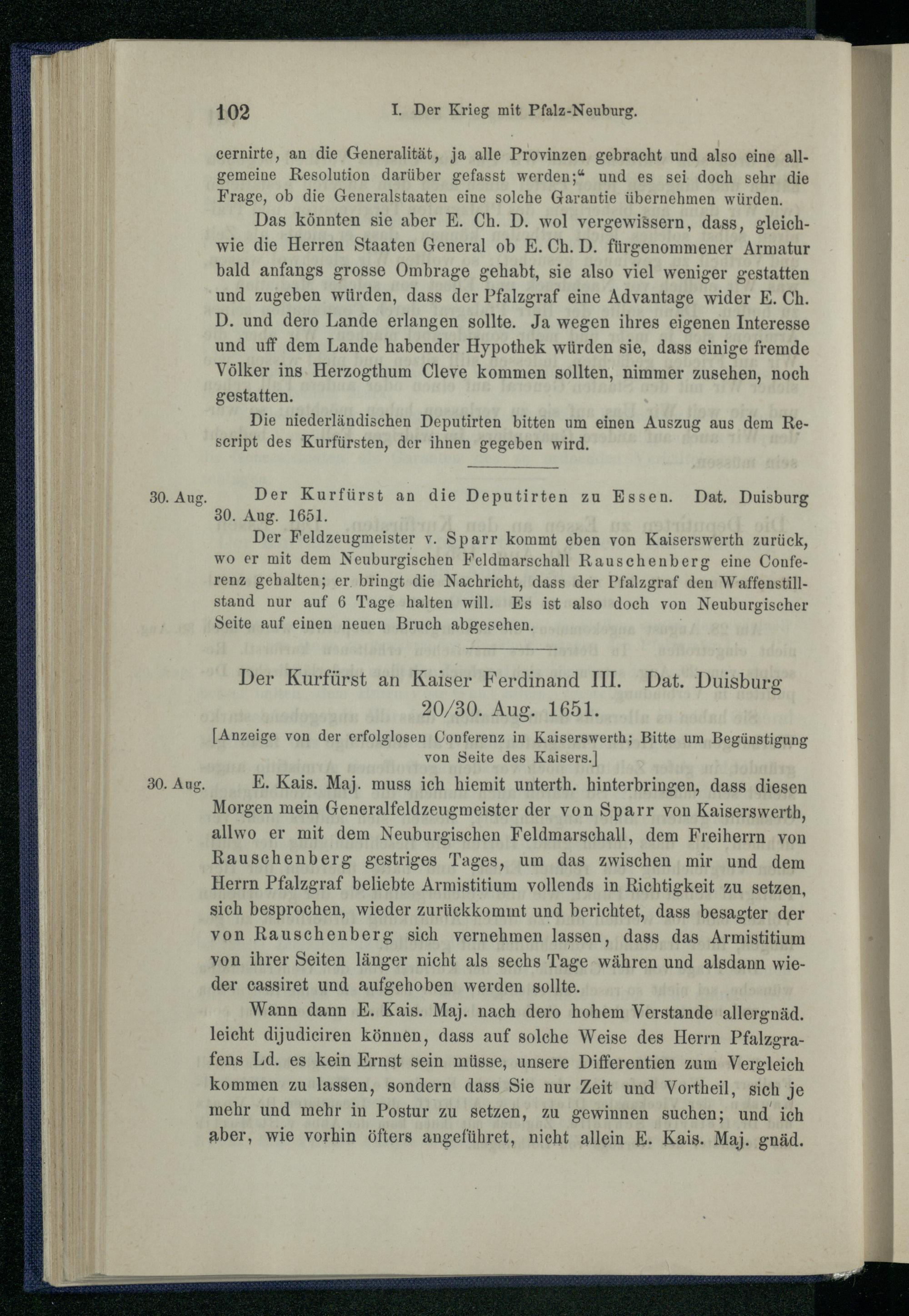 I. Der Krieg mit Pfalz-Neuburg 1651.