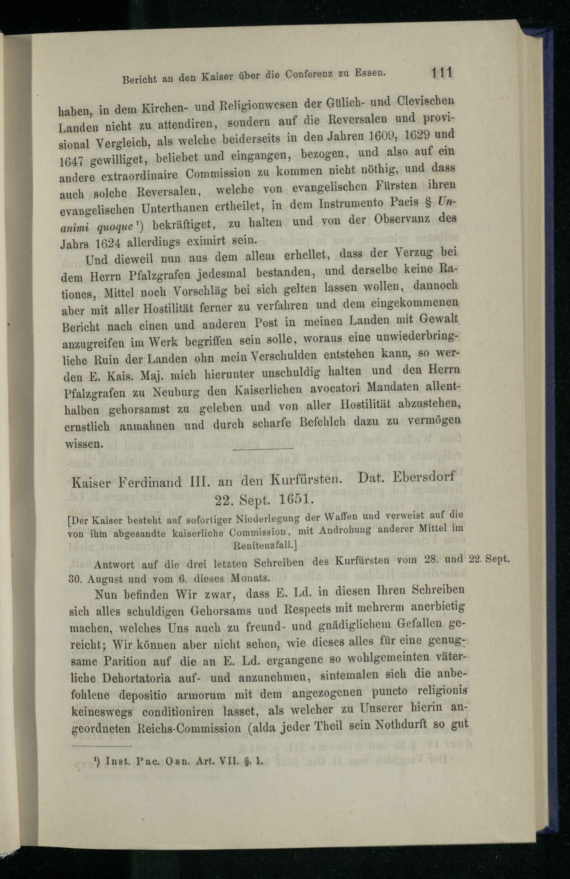 I. Der Krieg mit Pfalz-Neuburg 1651.