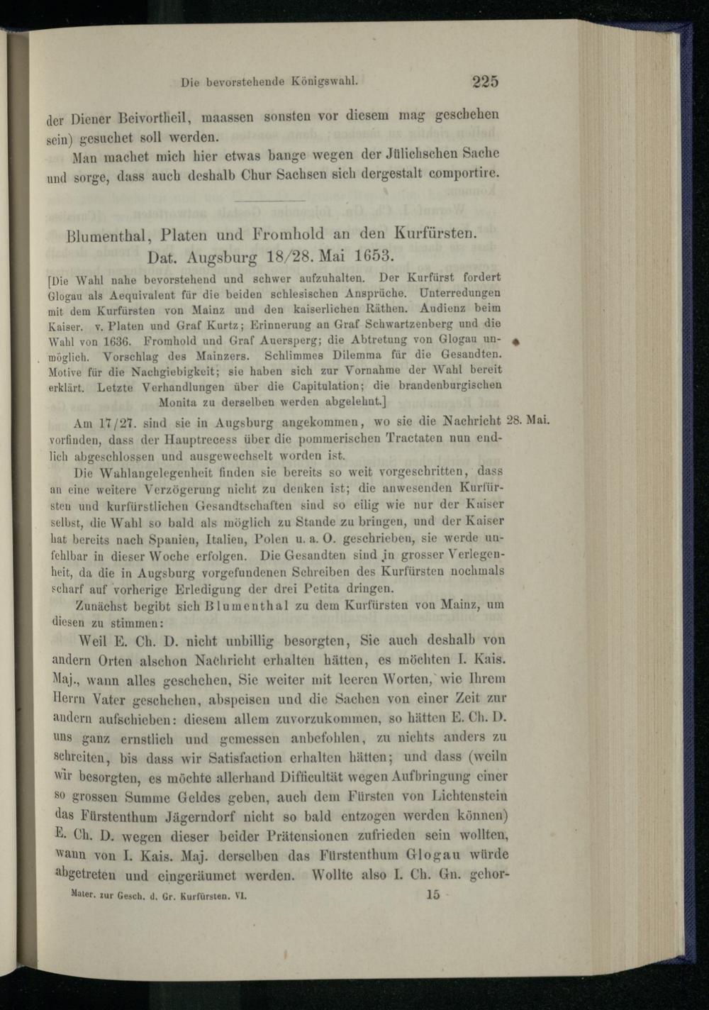 Urkunden und Actenstücke zur Geschichte des Kurfürsten Friedrich Wilhelm von Bra...