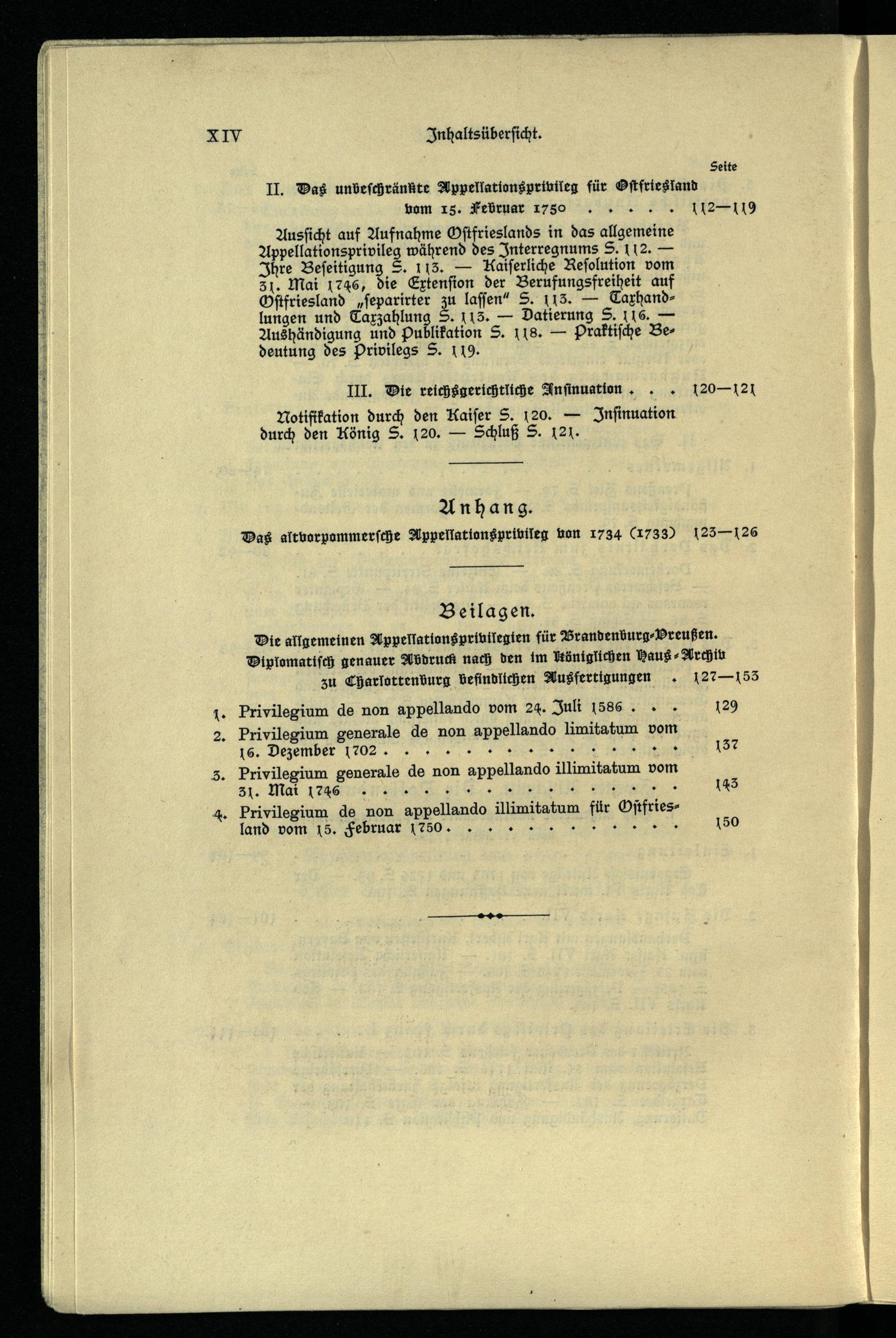 Beilagen. Die allgemeinen Appellationsprivilegien für Brandenburg-Preußen.