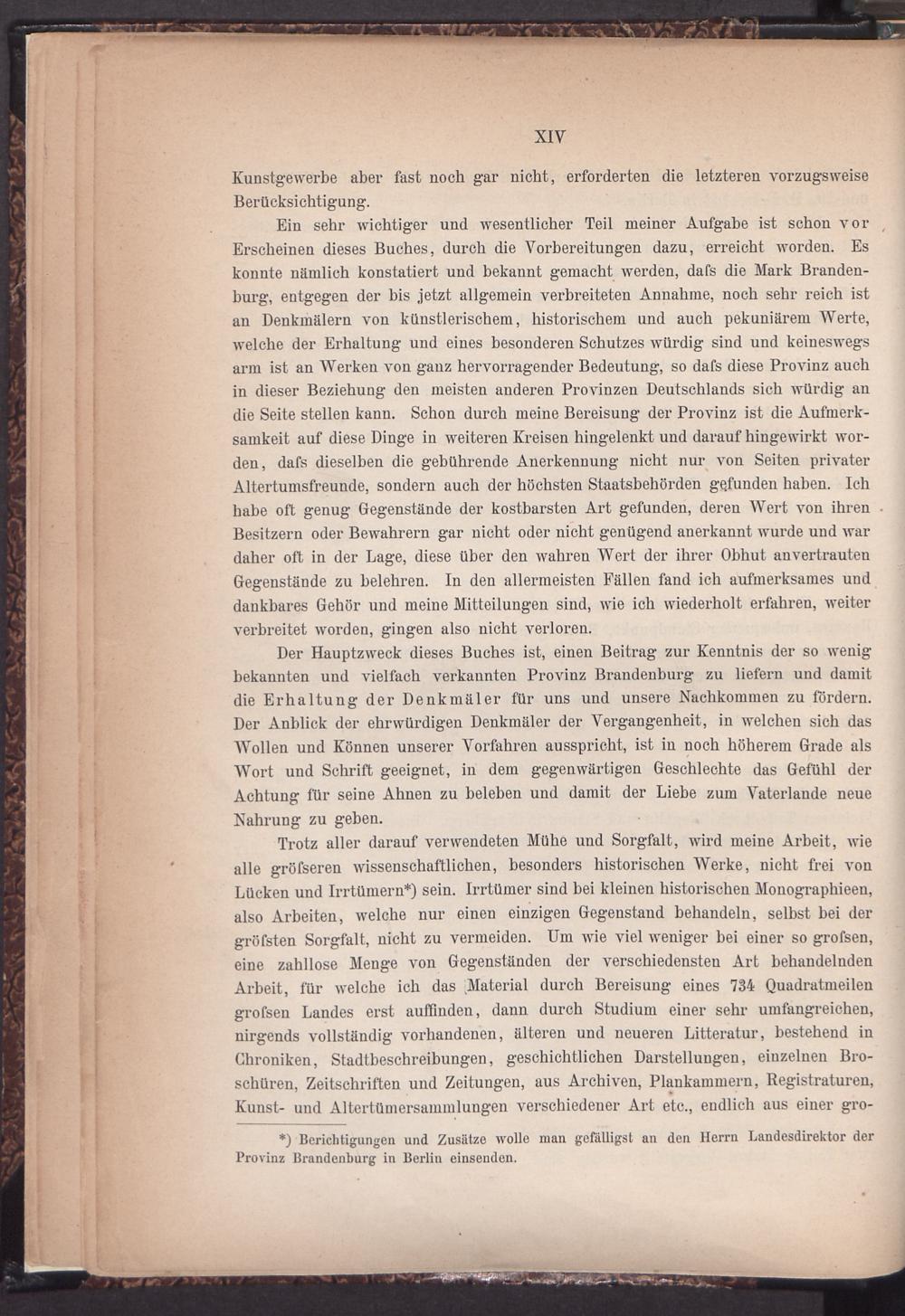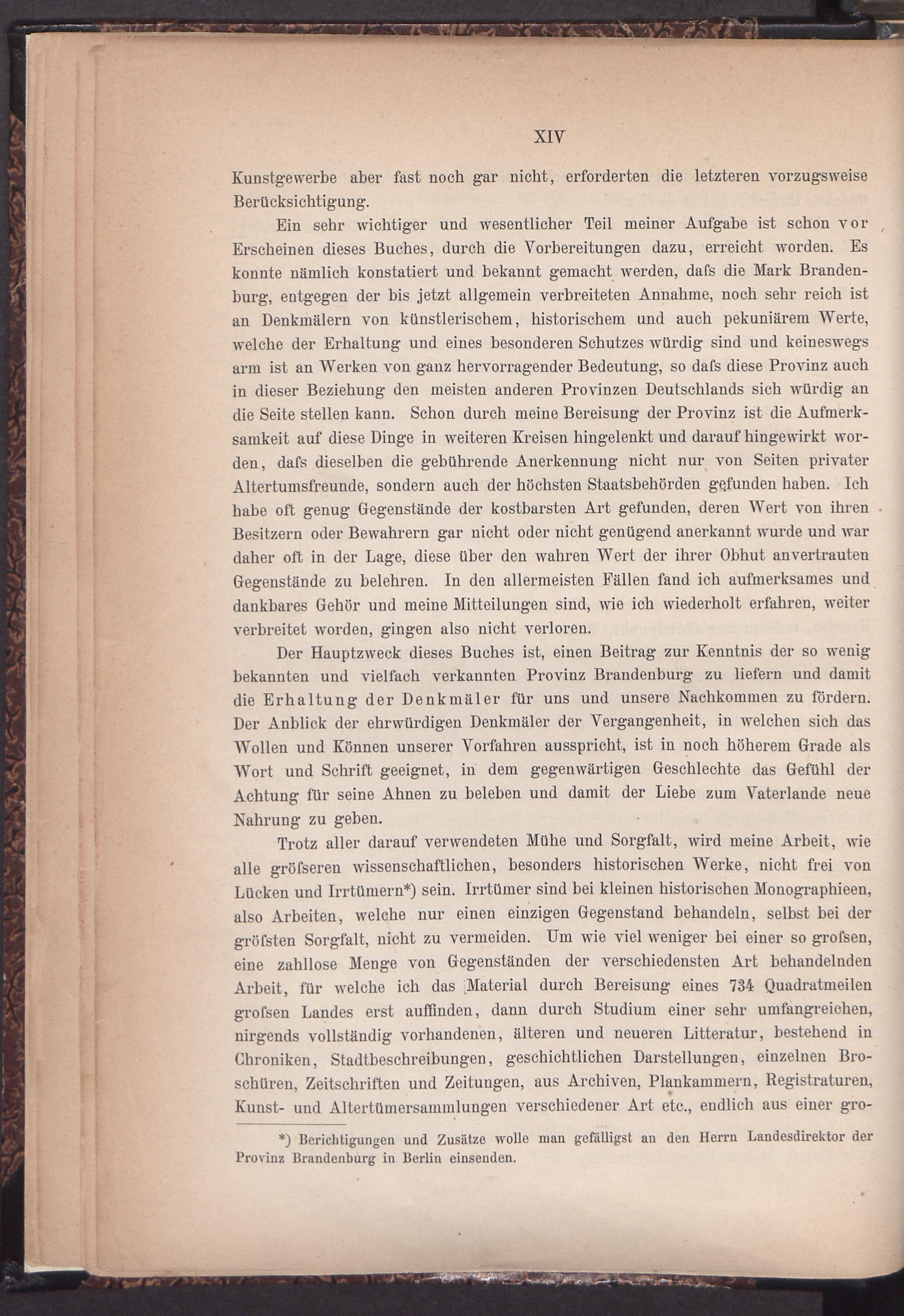 Inventar der Bau- und Kunstdenkmäler in der Provinz Brandenburg / im Auftrage des Brandenburgischen Provinzial-Landtages unter Mitwirkung von A. v. Eye, W. Köhne, A. Körner, P. Lehfeldt, R. Schillmann, W. Schulenburg, F. Warnecke, E. Wernicke u.a. bearbeitet von R. Bergau