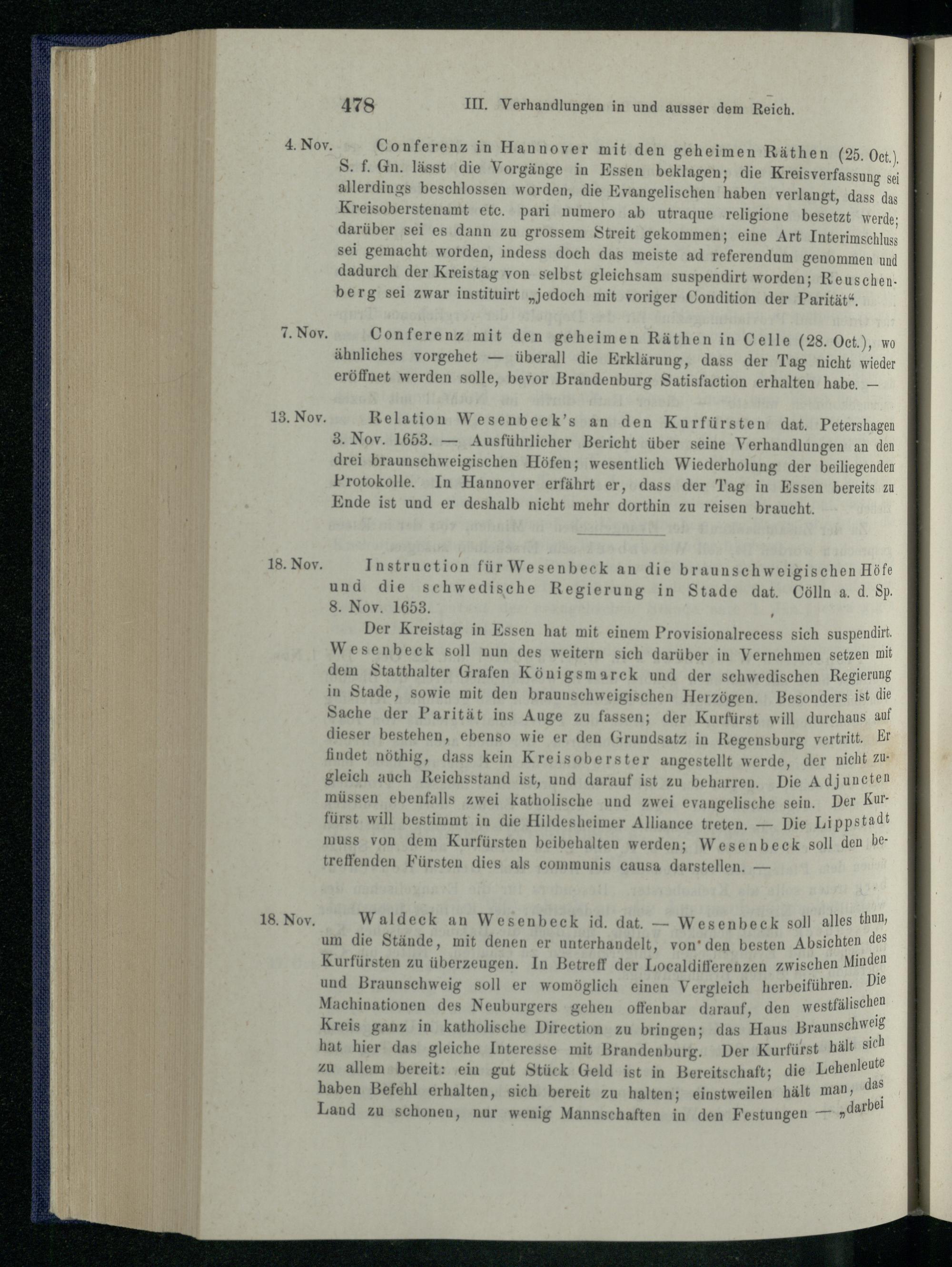III. Verhandlungen in und ausser dem Reich 1652 - 1655.
