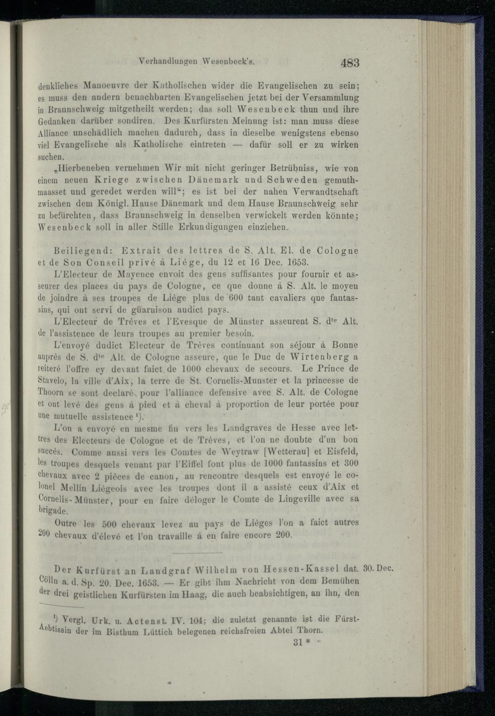 7. Sendungen Wesenbeck's, October bis December 1653.