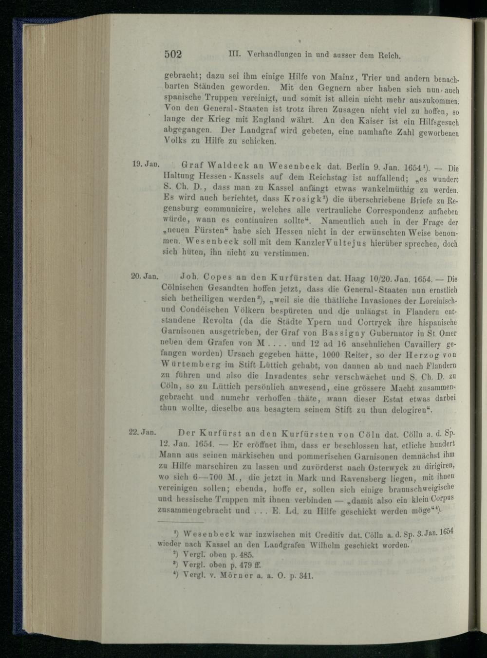 III. Verhandlungen in und ausser dem Reich 1652 - 1655.