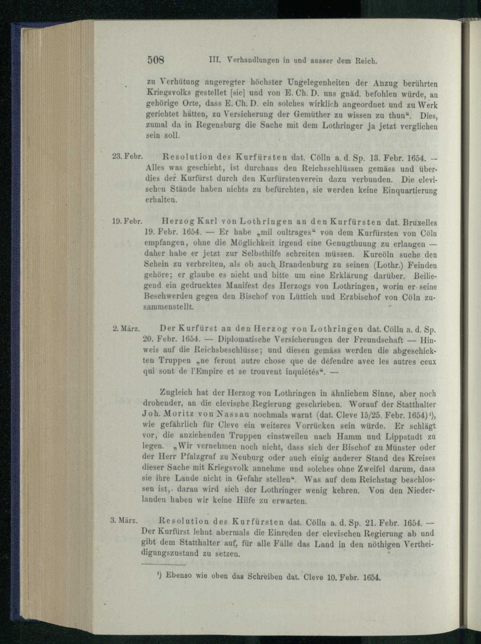 III. Verhandlungen in und ausser dem Reich 1652 - 1655.