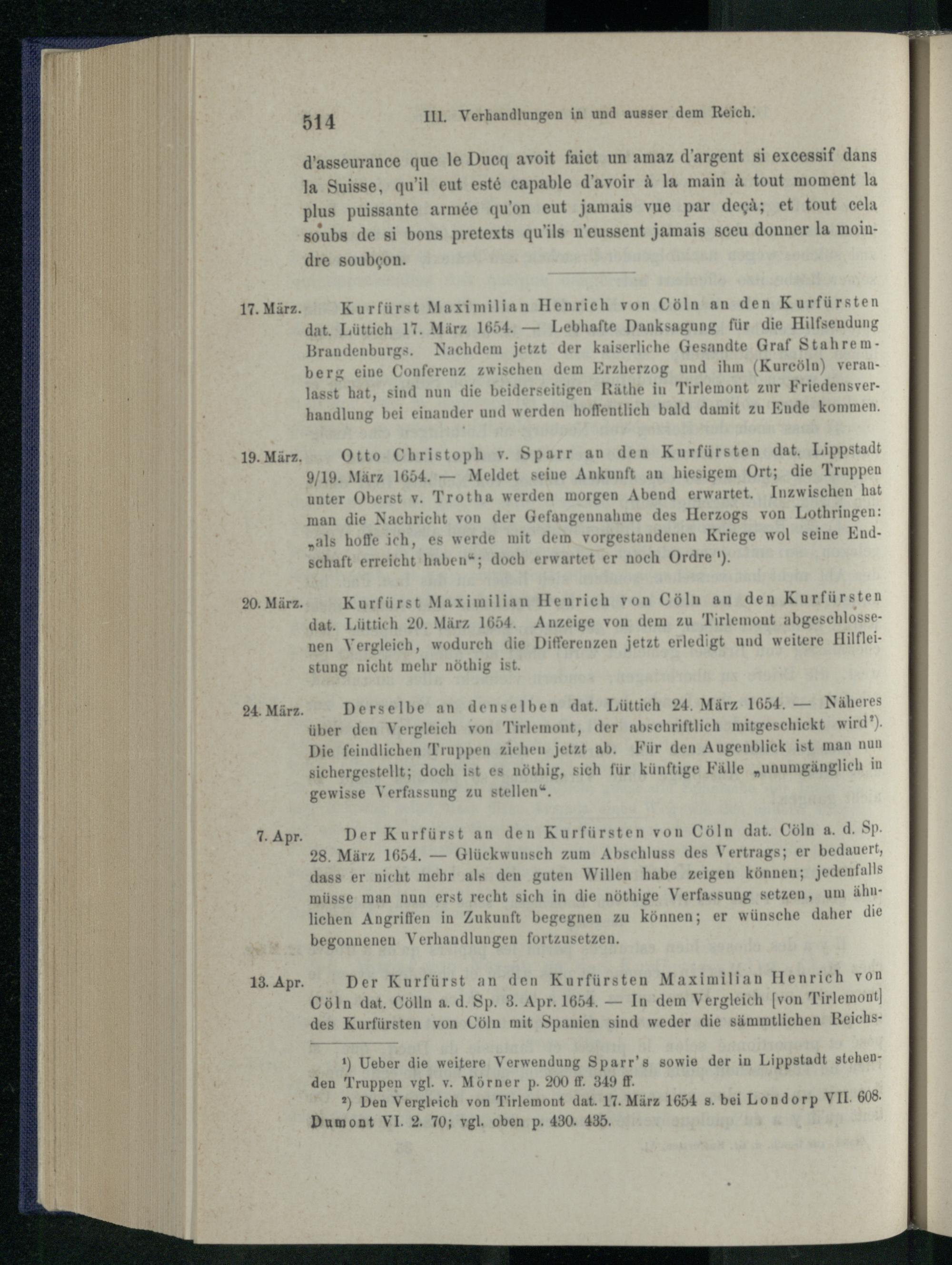 III. Verhandlungen in und ausser dem Reich 1652 - 1655.