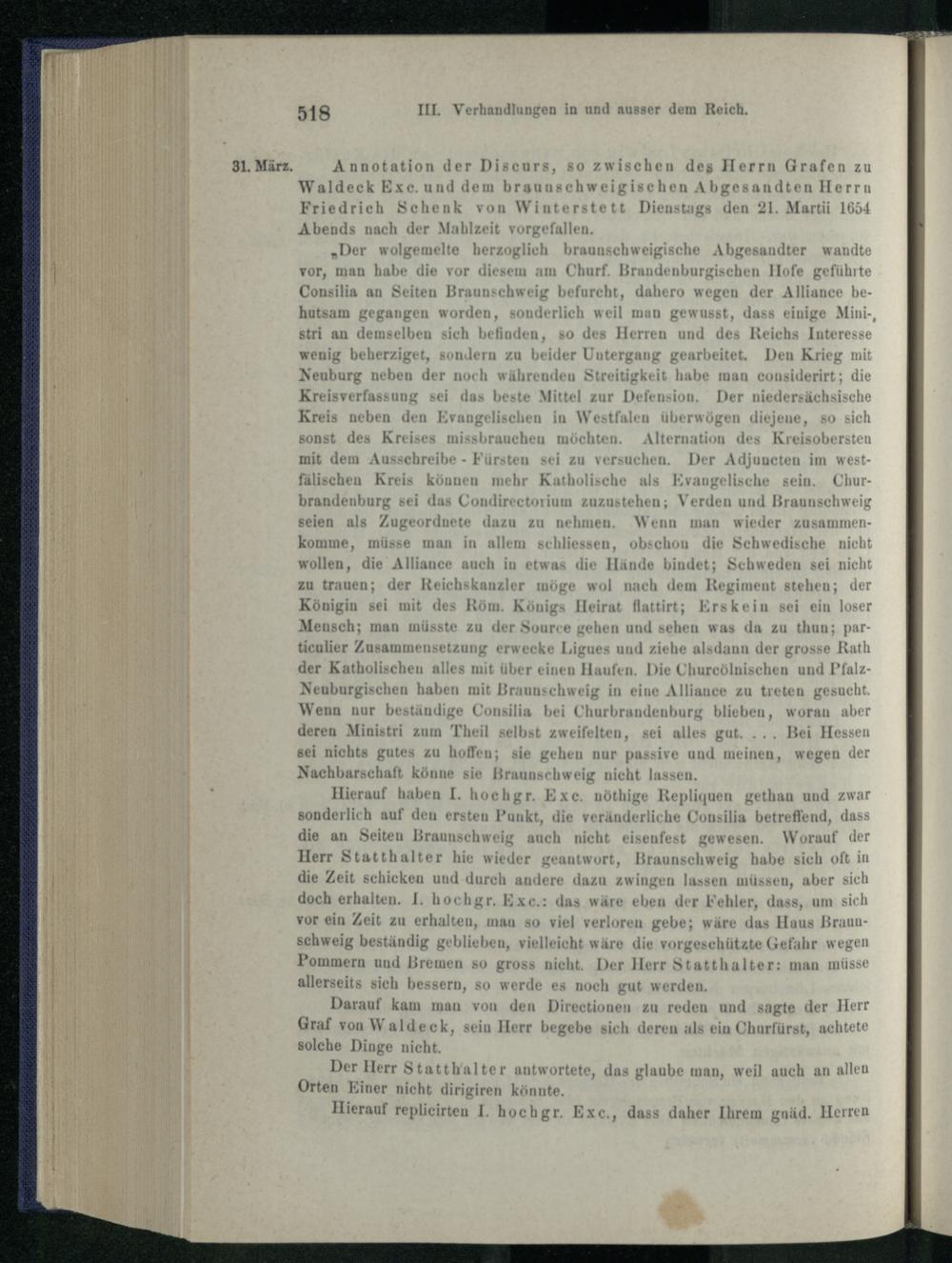 III. Verhandlungen in und ausser dem Reich 1652 - 1655.