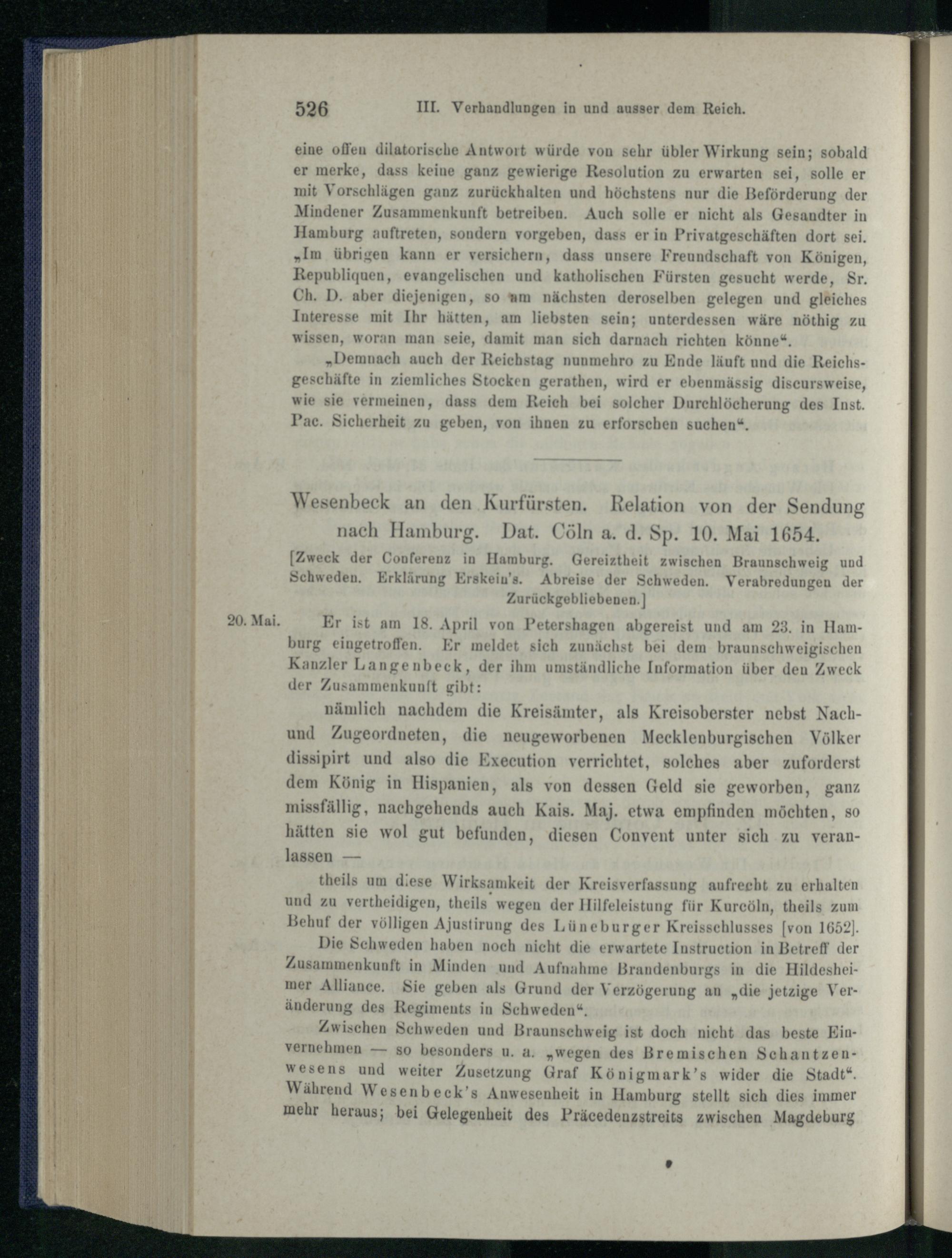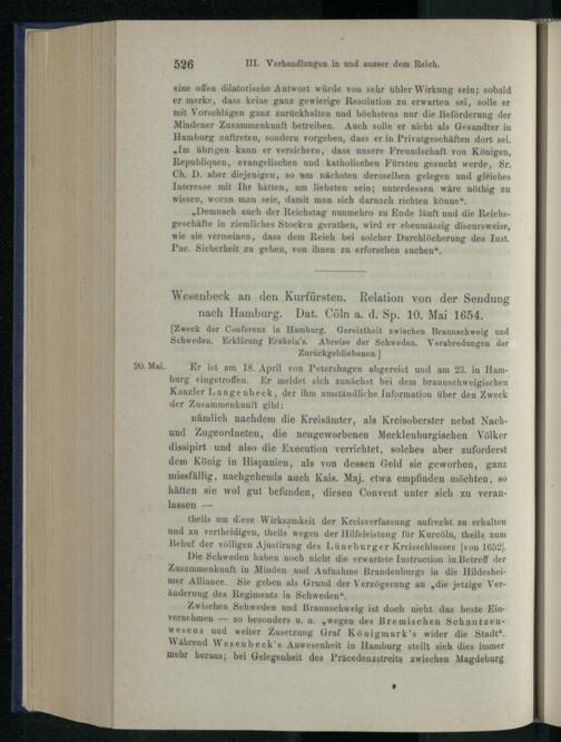 III. Verhandlungen in und ausser dem Reich 1652 - 1655.