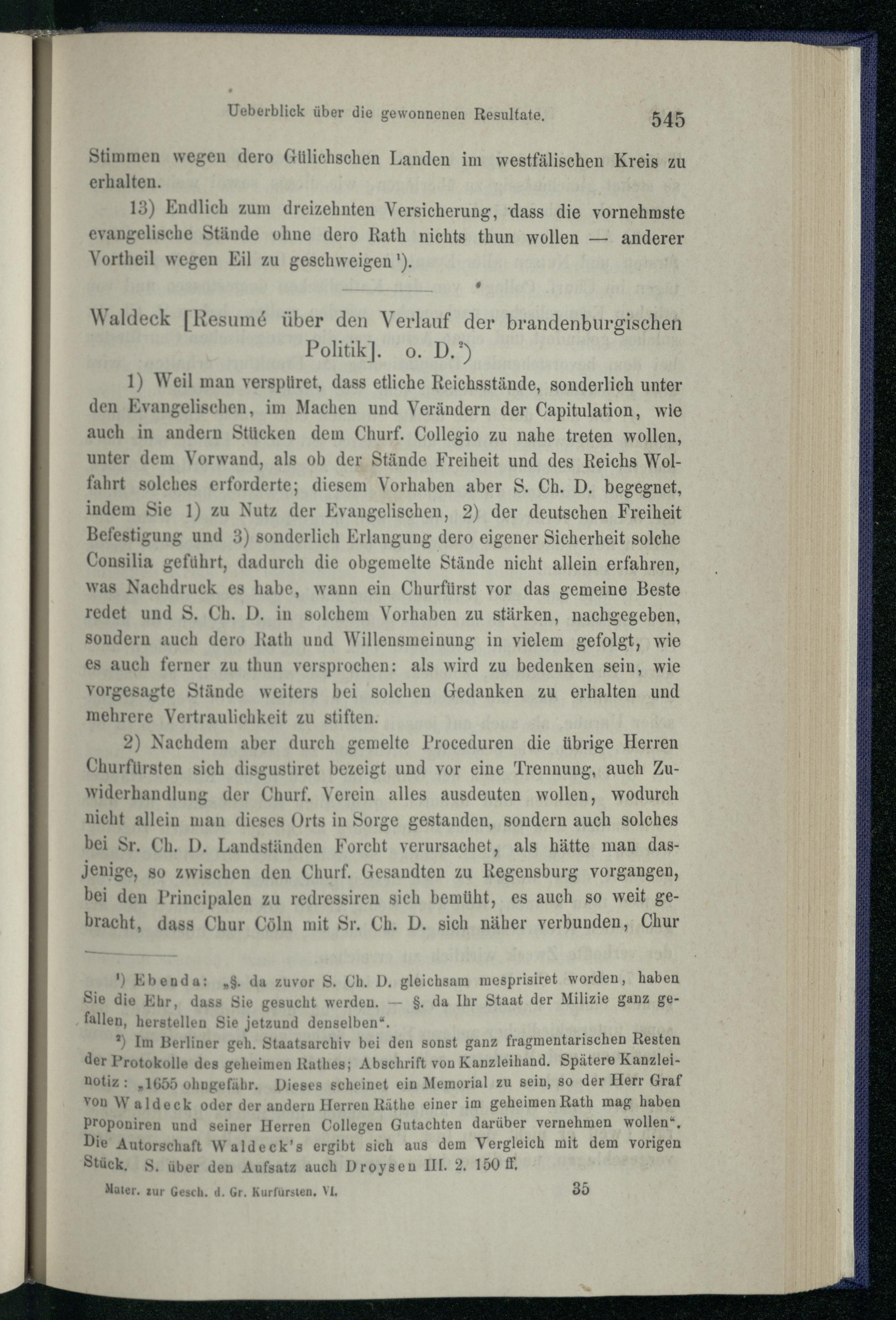 Urkunden und Actenstücke zur Geschichte des Kurfürsten Friedrich Wilhelm von Bra...