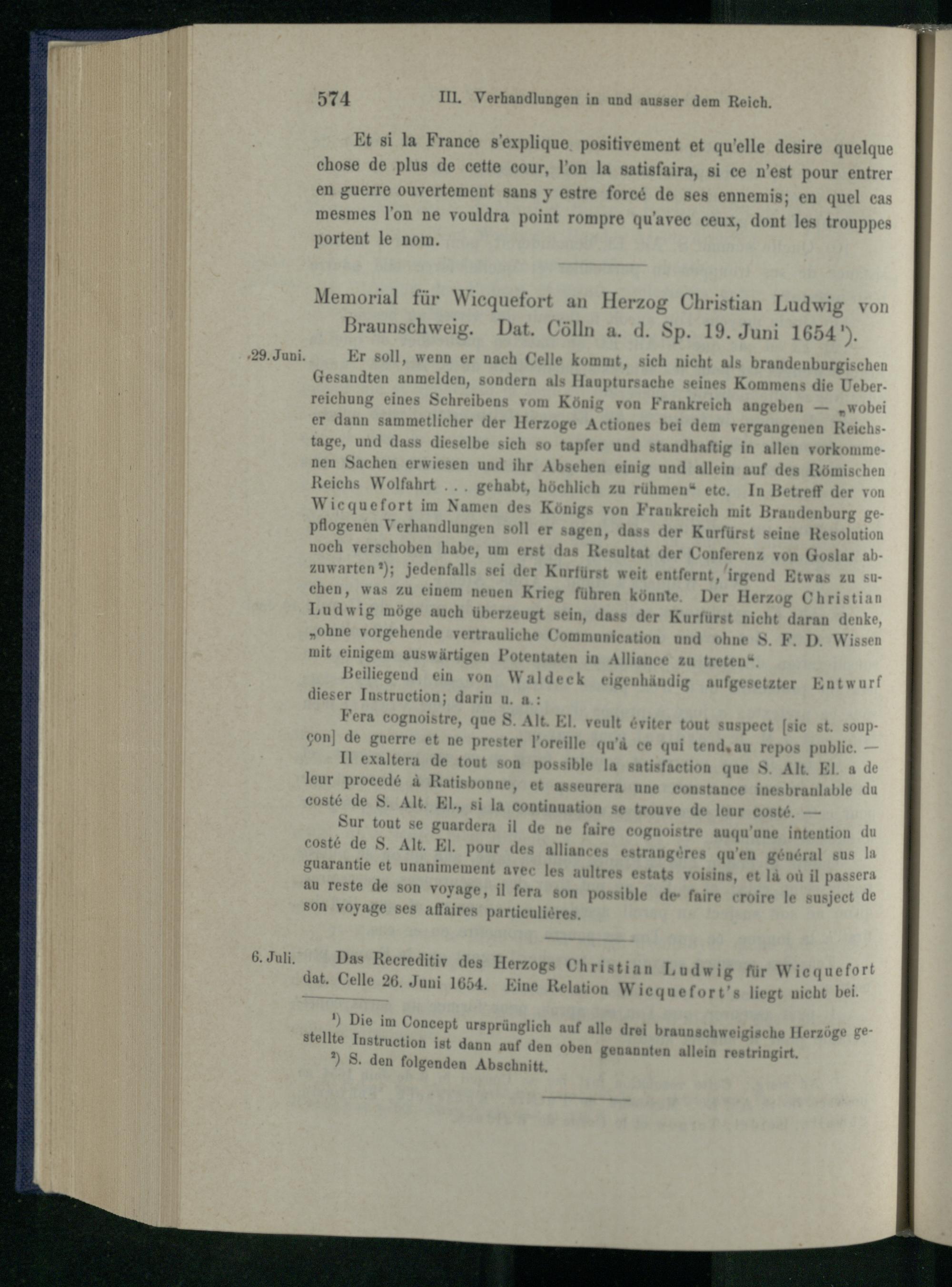 III. Verhandlungen in und ausser dem Reich 1652 - 1655.