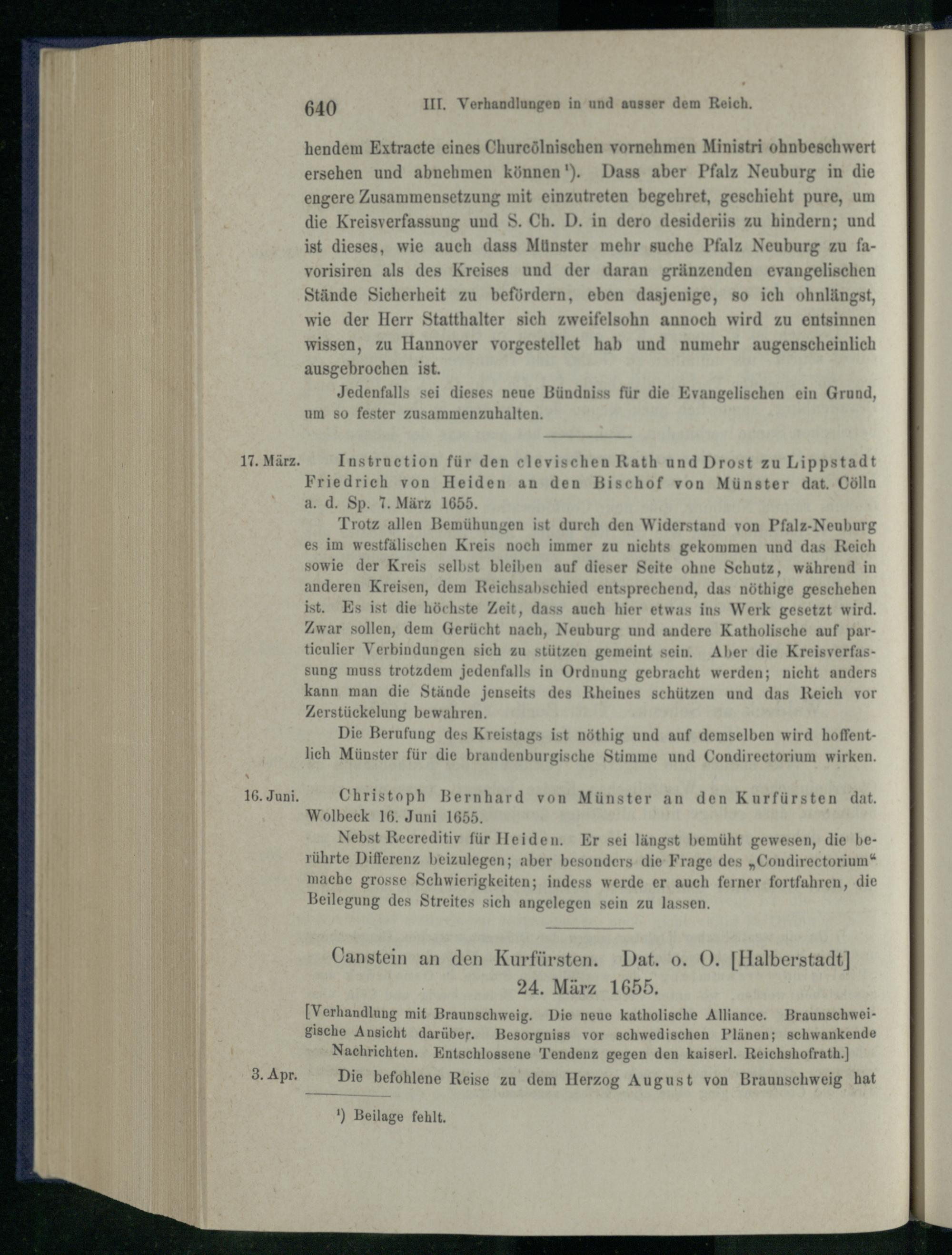 III. Verhandlungen in und ausser dem Reich 1652 - 1655.