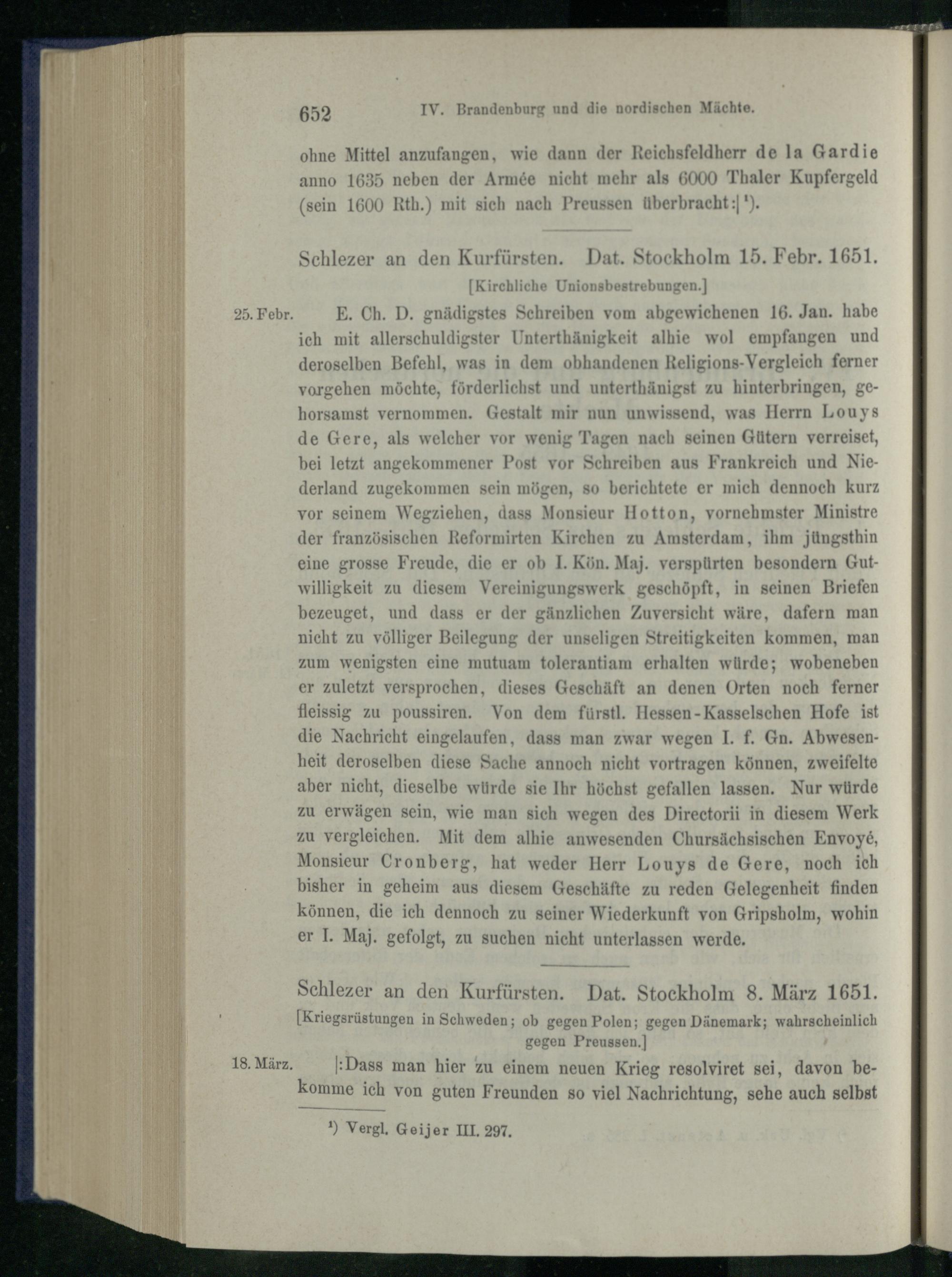 1. Berichte Schlezer's aus Schweden 1651 - 1653.