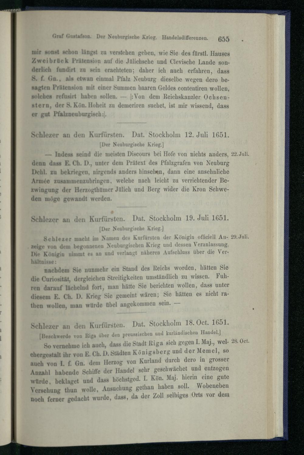 1. Berichte Schlezer's aus Schweden 1651 - 1653.