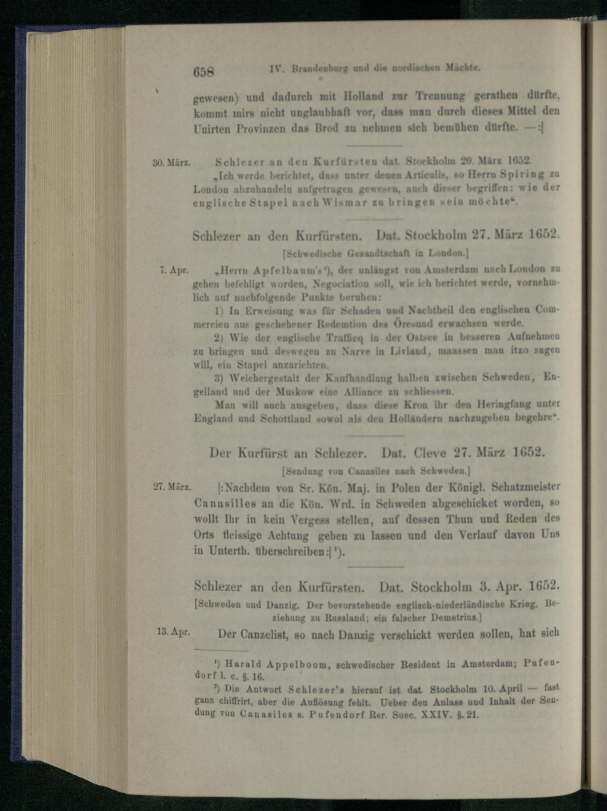 1. Berichte Schlezer's aus Schweden 1651 - 1653.