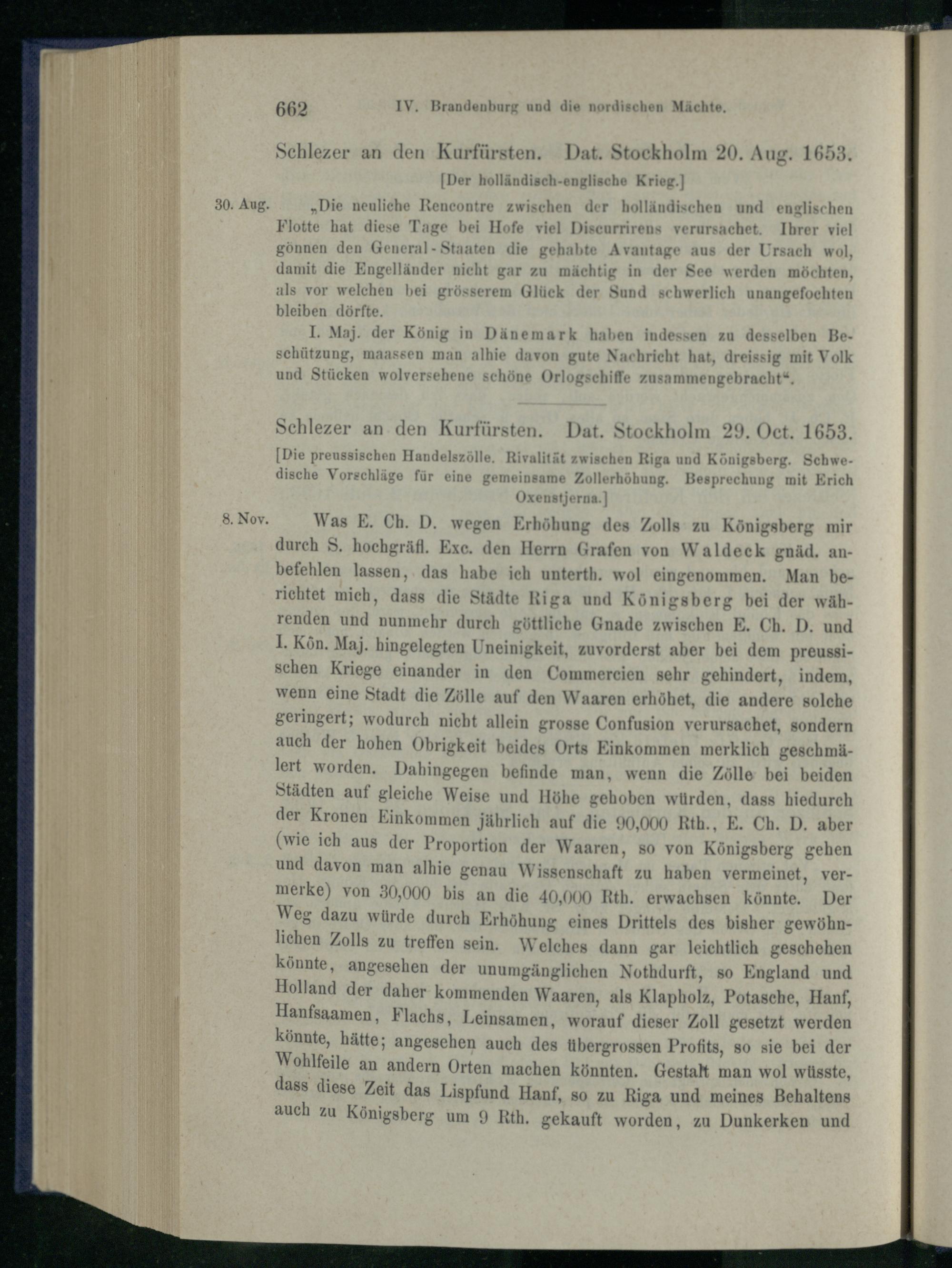 1. Berichte Schlezer's aus Schweden 1651 - 1653.