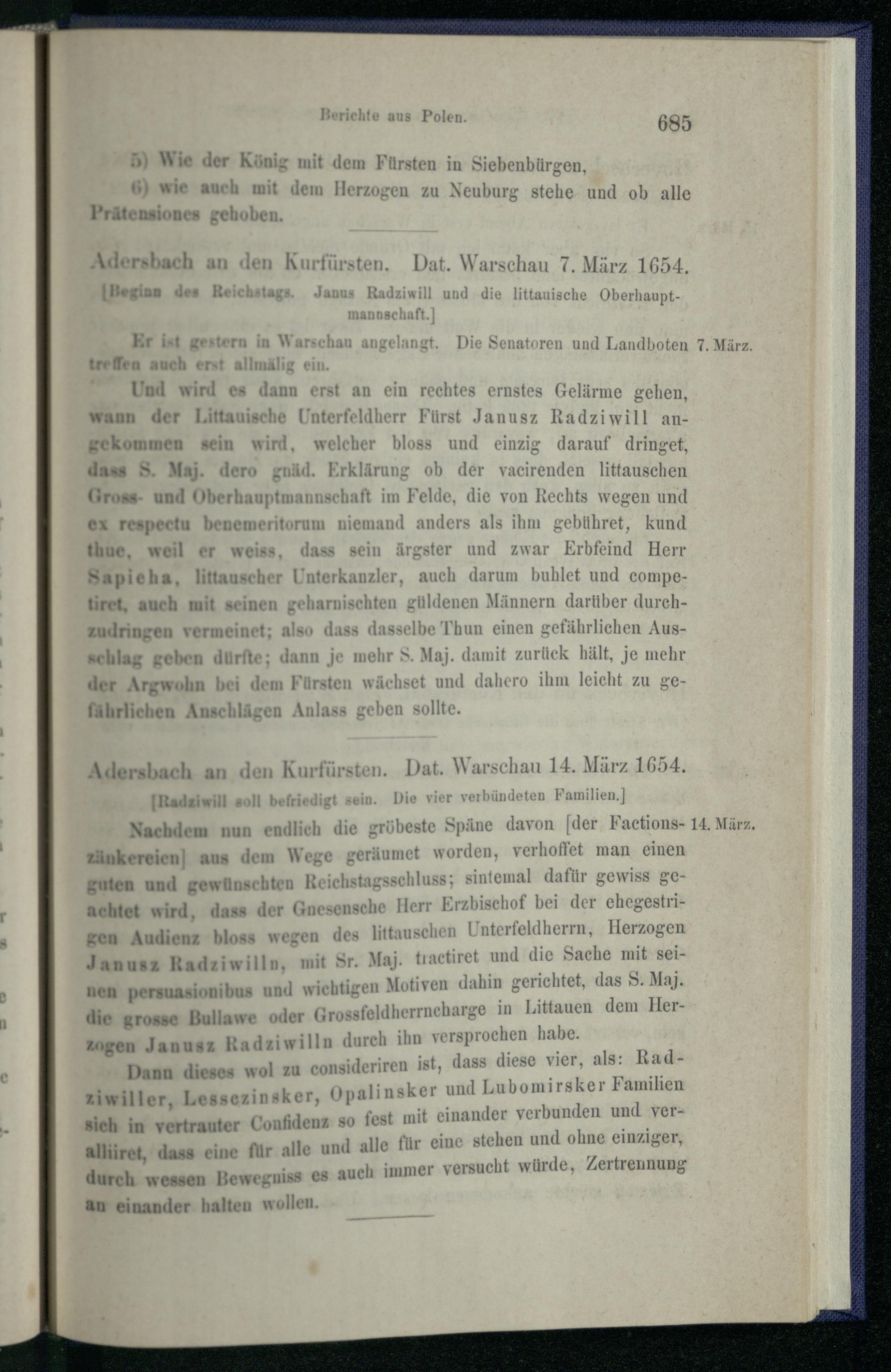 4. Berichte von Hoverbeck und Adersbach aus Polen 1649 - 1655.