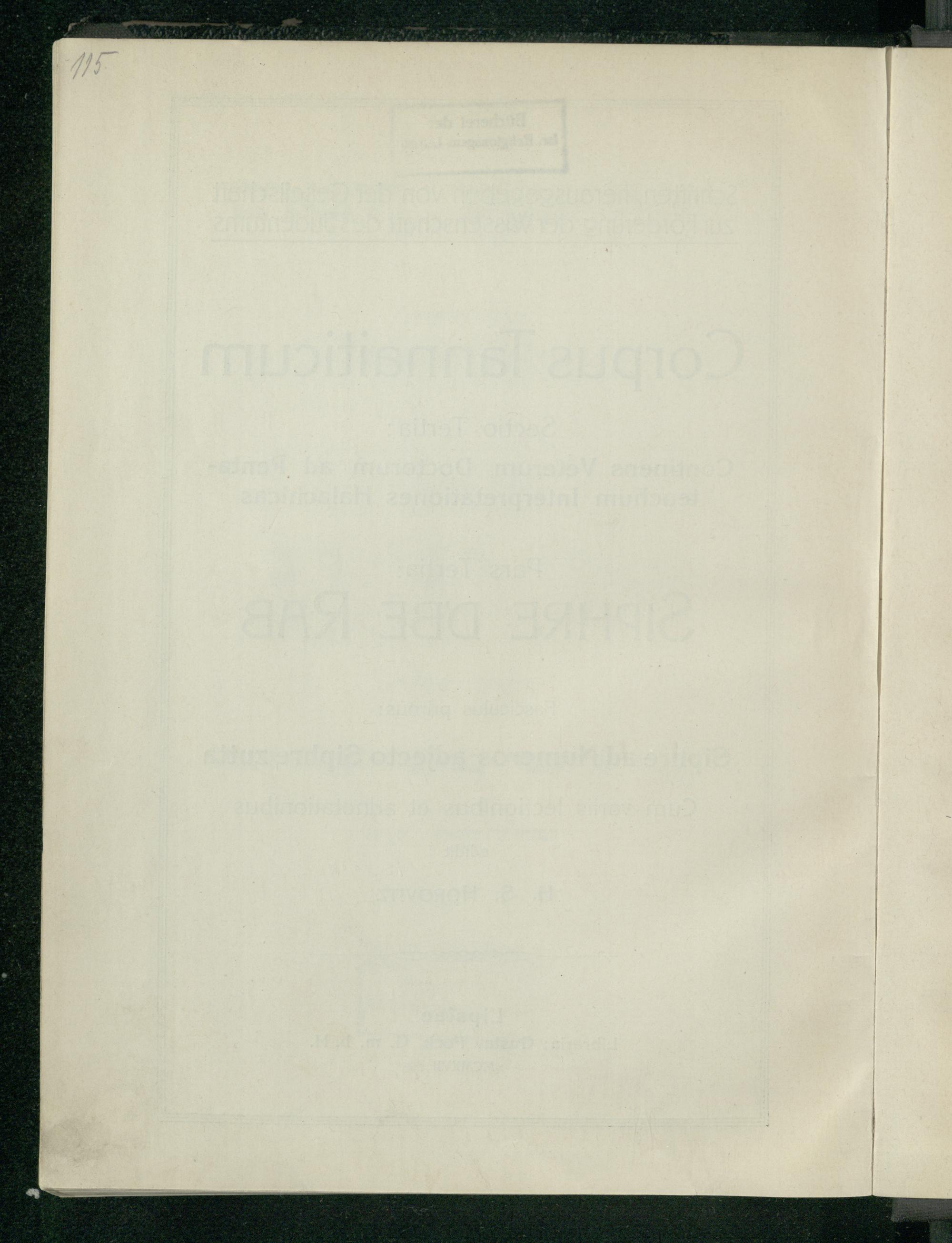 Sectio 3, Ps. 3, Fasc. 1 (1917) Siphre ad Numeros adjecto Siphre zutta / cum variis lectionibus et adnotationibus ed. H. S. Horovitz