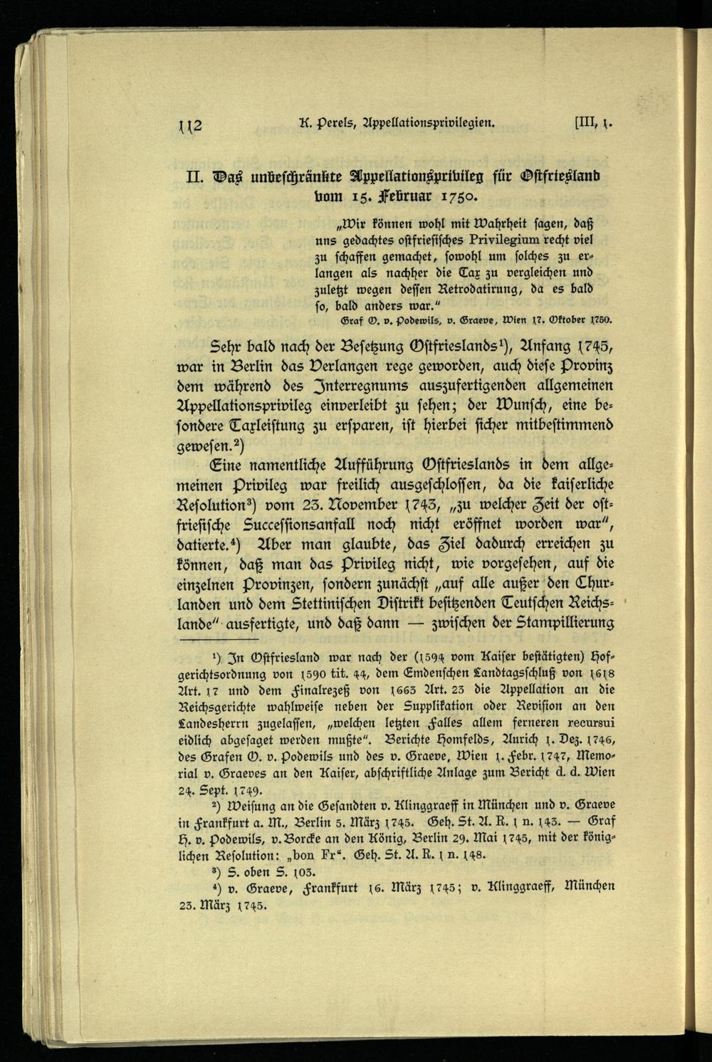 Viertes Kapitel. Das allgemeine unbeschränkte und das ostfriesische Appellationsprivileg von 1750 (1746).
