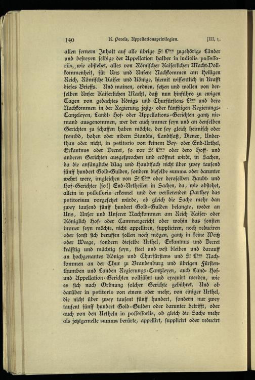 Beilagen. Die allgemeinen Appellationsprivilegien für Brandenburg-Preußen.