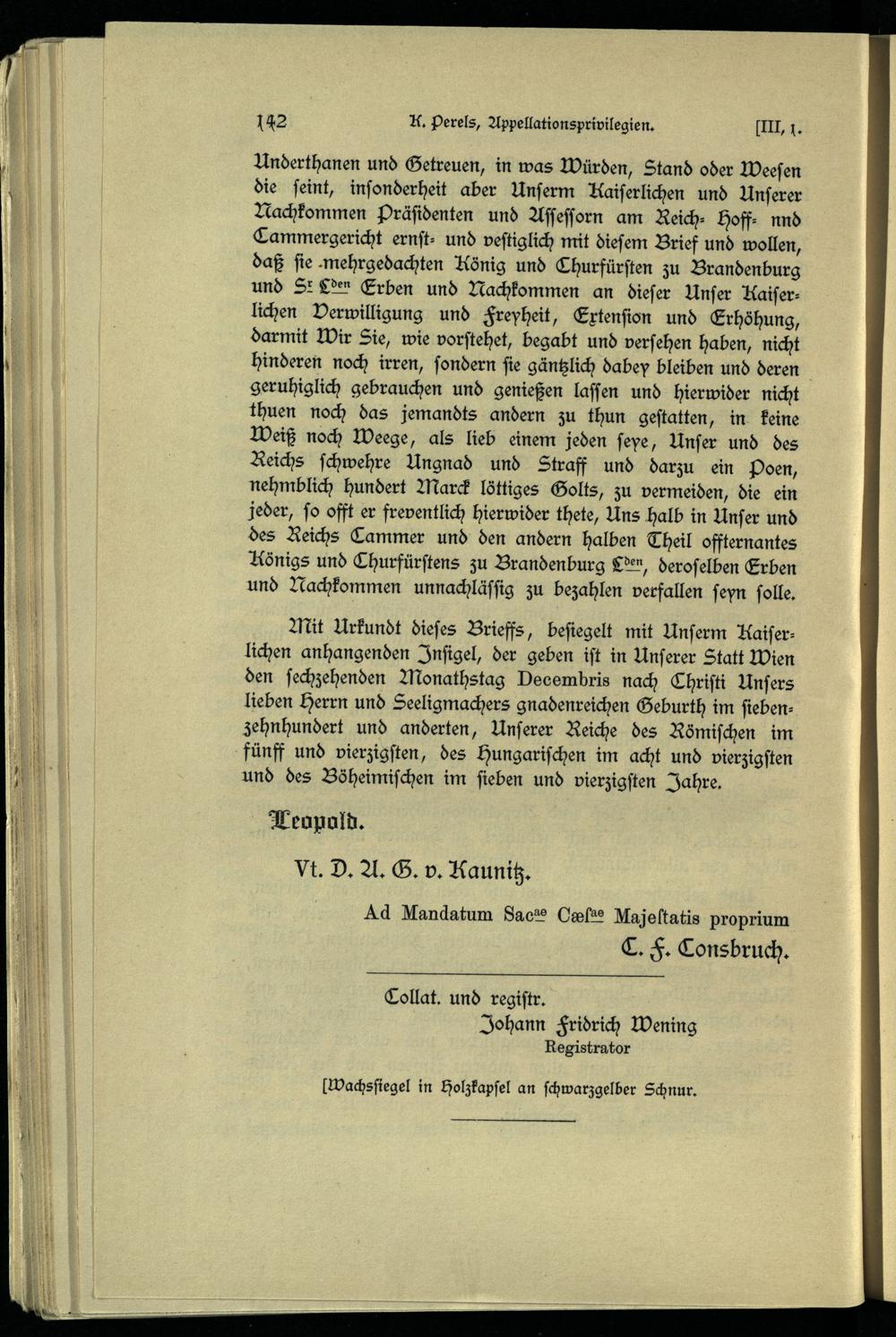 Beilagen. Die allgemeinen Appellationsprivilegien für Brandenburg-Preußen.