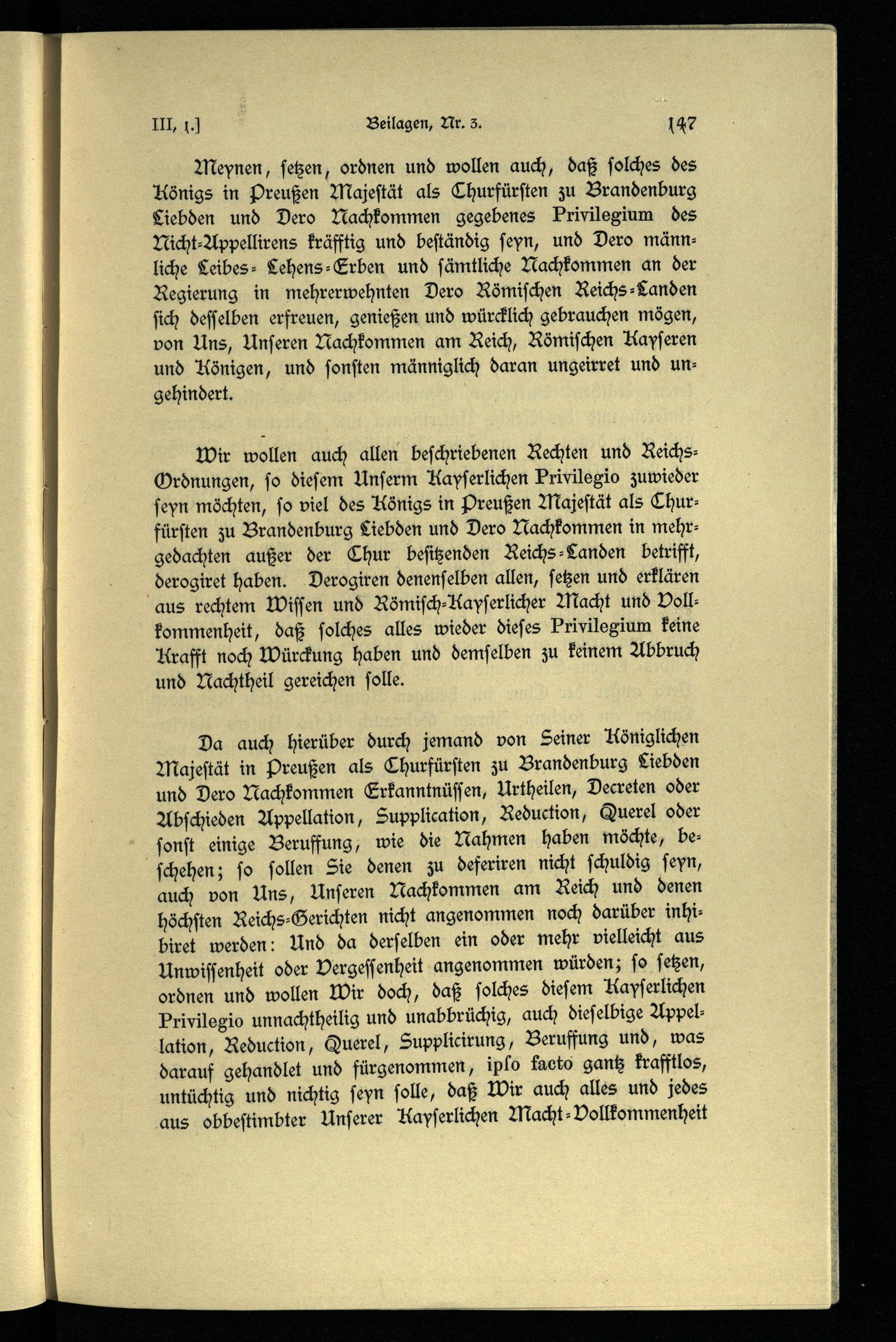 Beilagen. Die allgemeinen Appellationsprivilegien für Brandenburg-Preußen.
