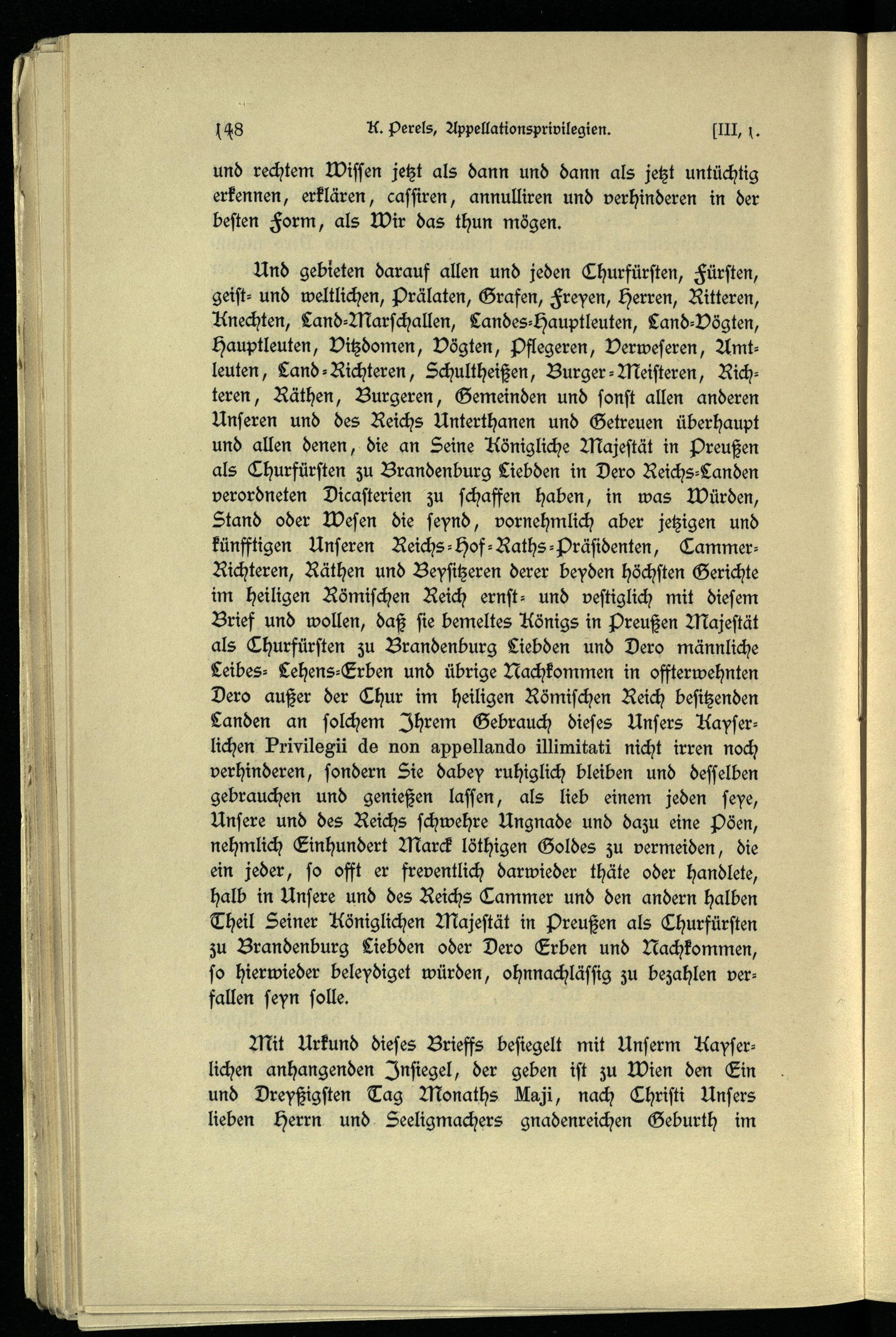 Beilagen. Die allgemeinen Appellationsprivilegien für Brandenburg-Preußen.