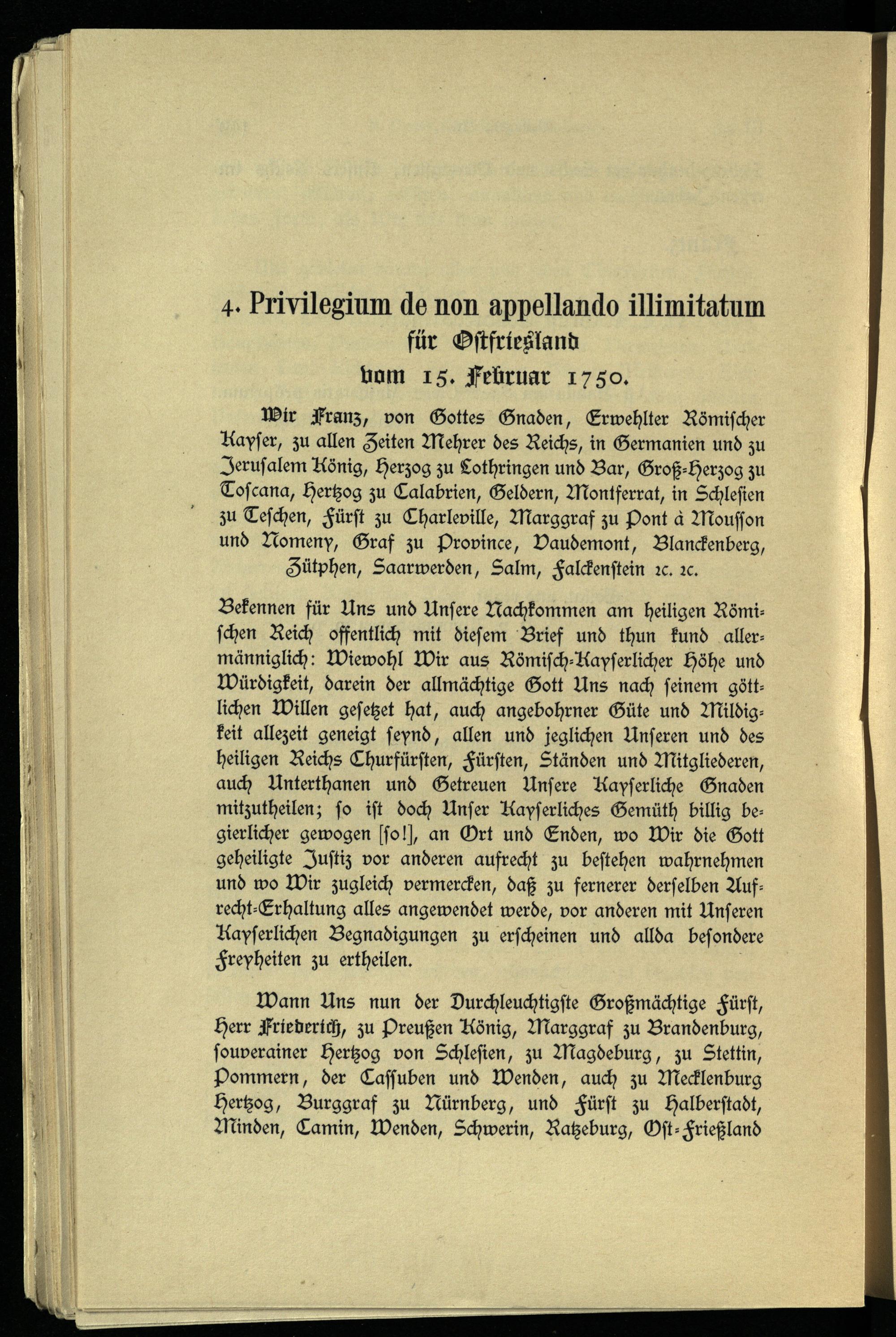 4. Privilegium de non appellando illimitatum für Ostfriesland vom 15. Februar 1750.