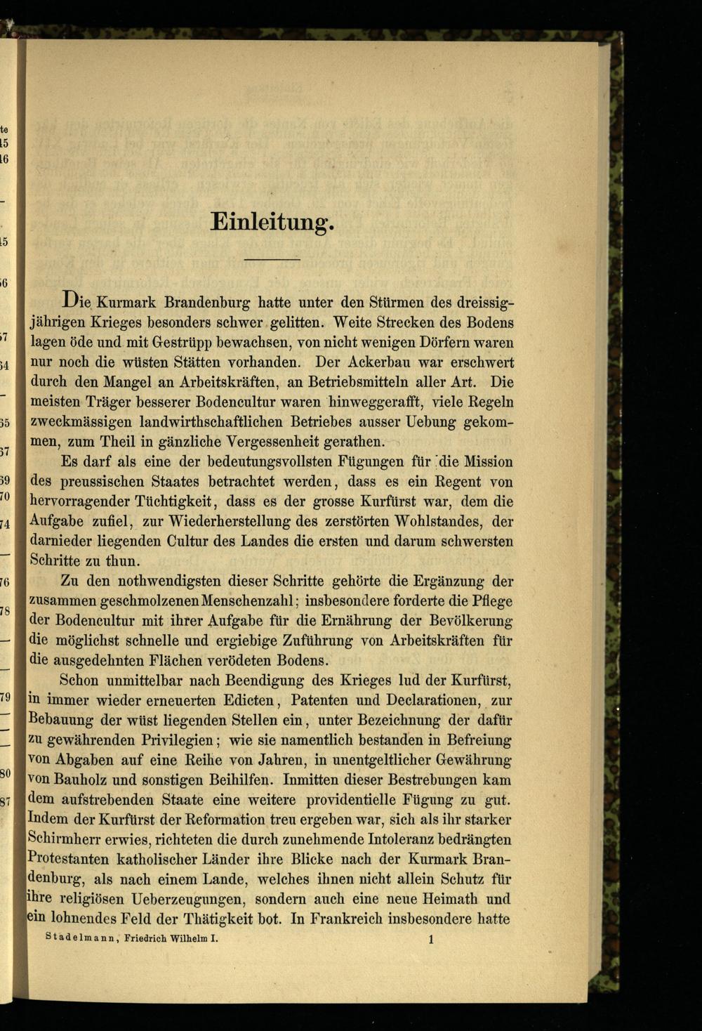 Friedrich Wilhelm I. in seiner Thätigkeit für die Landescultur Preußens / von Rudolph Stadelmann