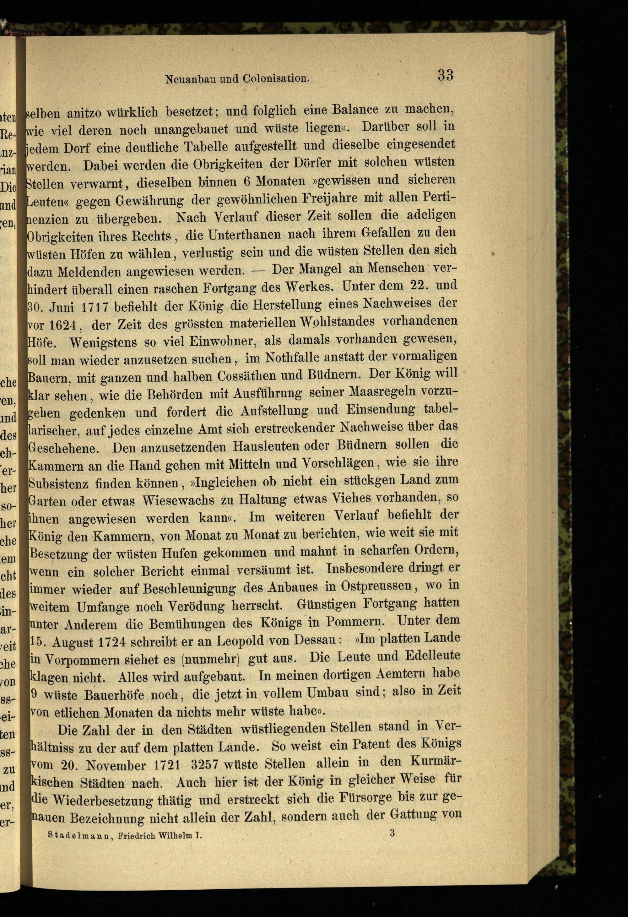 Friedrich Wilhelm I. in seiner Thätigkeit für die Landescultur Preußens / von Rudolph Stadelmann